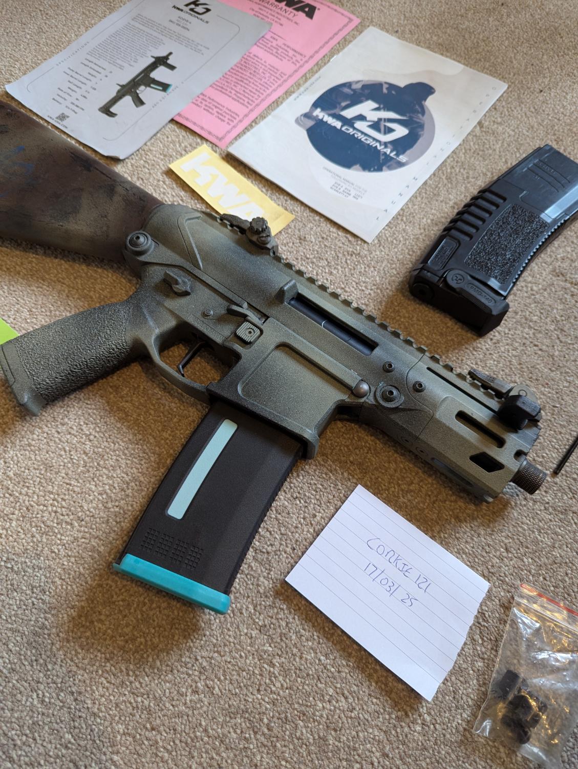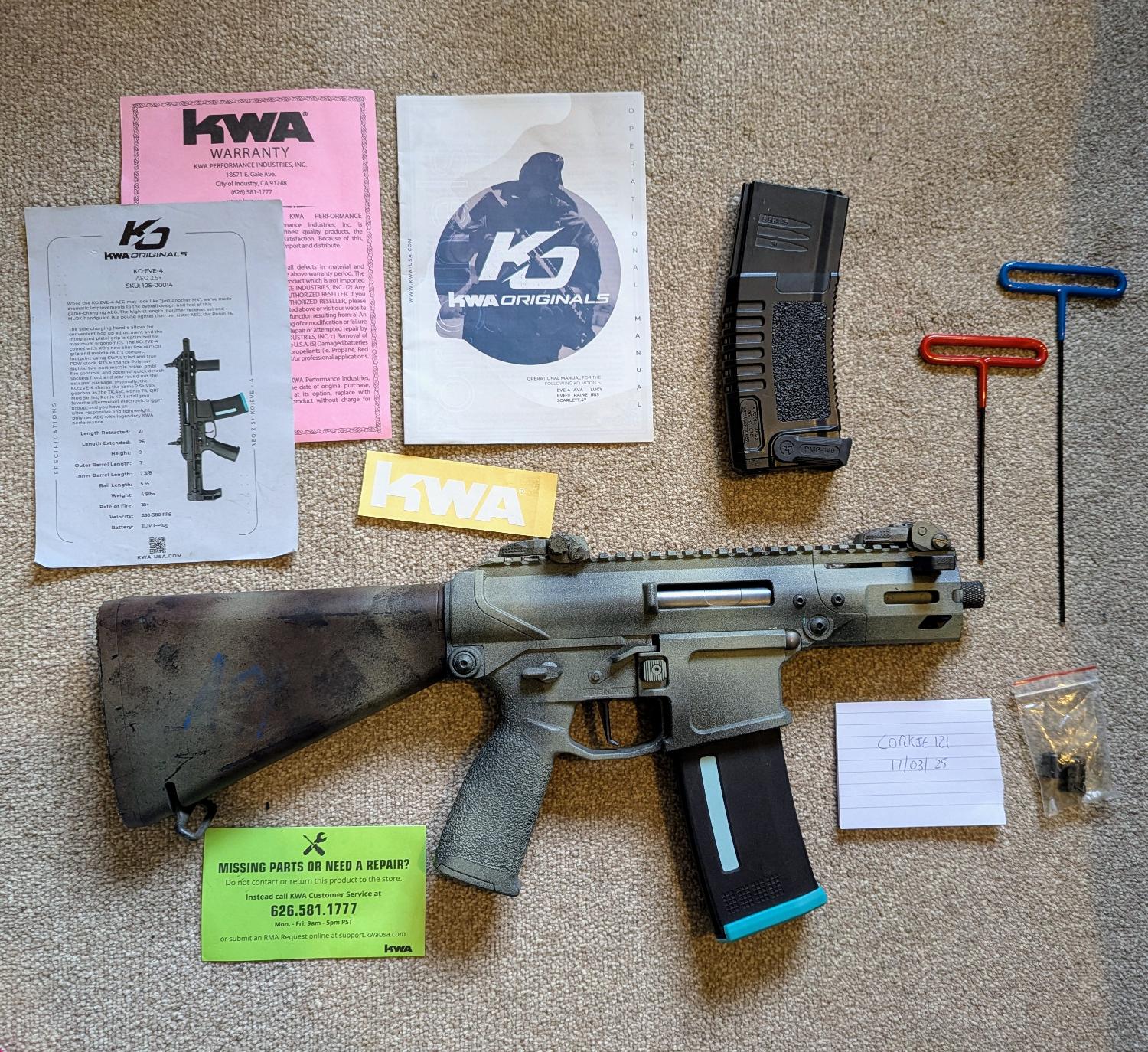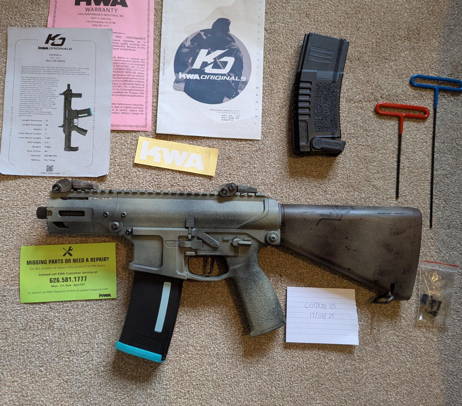 Started life as a KWA EVE-4, but has been shortened down to make a perfect cqb gun with a stubby stock custom fitted.