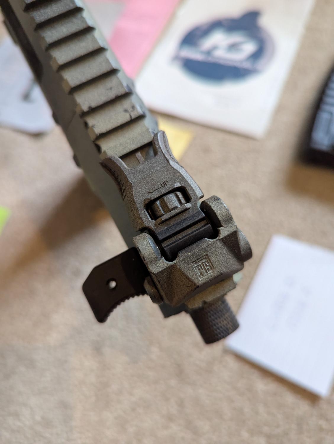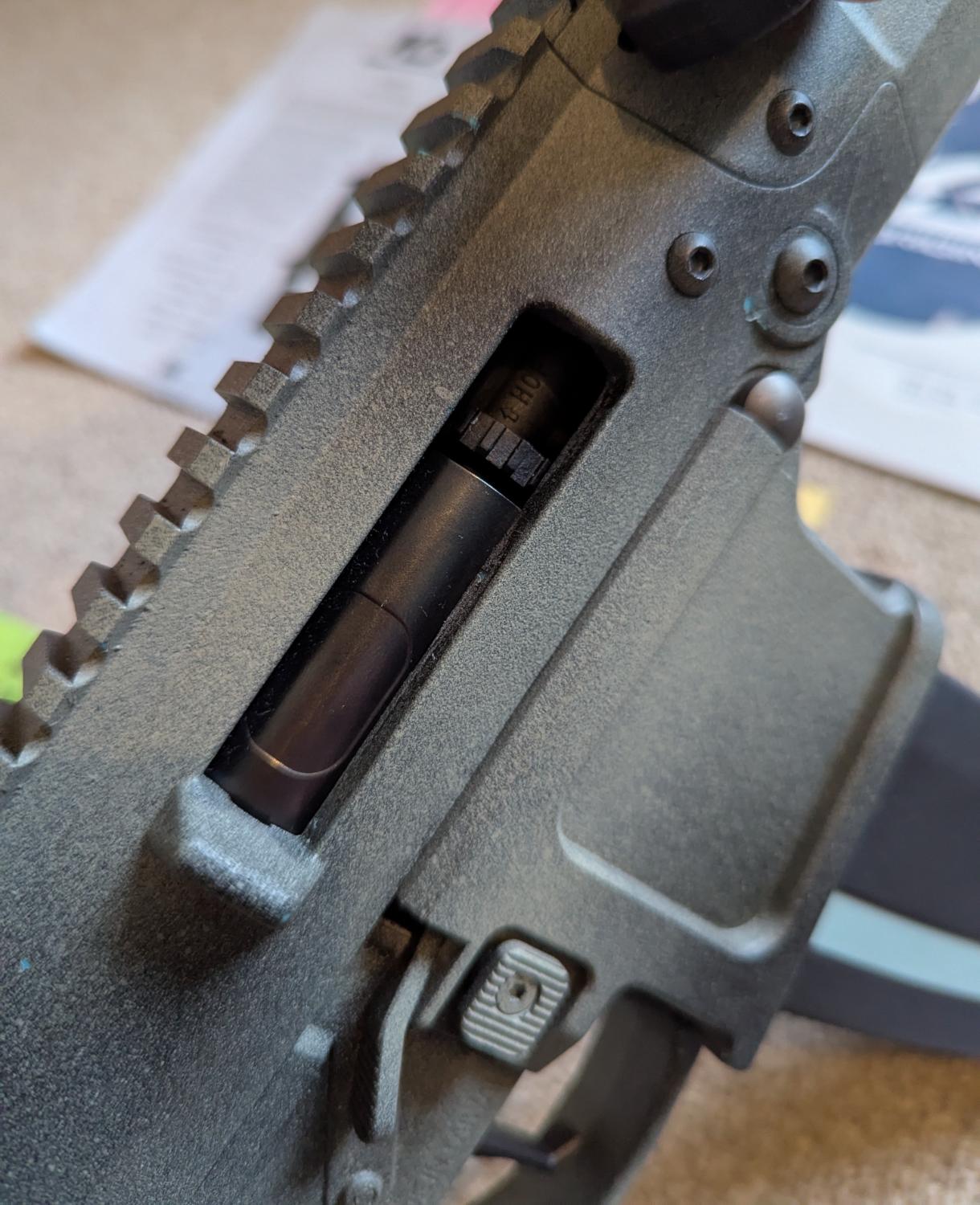 Adjustable fps system is helpful to ensure you stay in the fps limits of your site. Tools and paperwork included, along with PTS flip up sights. Rotary hop up unit, threaded outer barrel for tracer or suppressor.