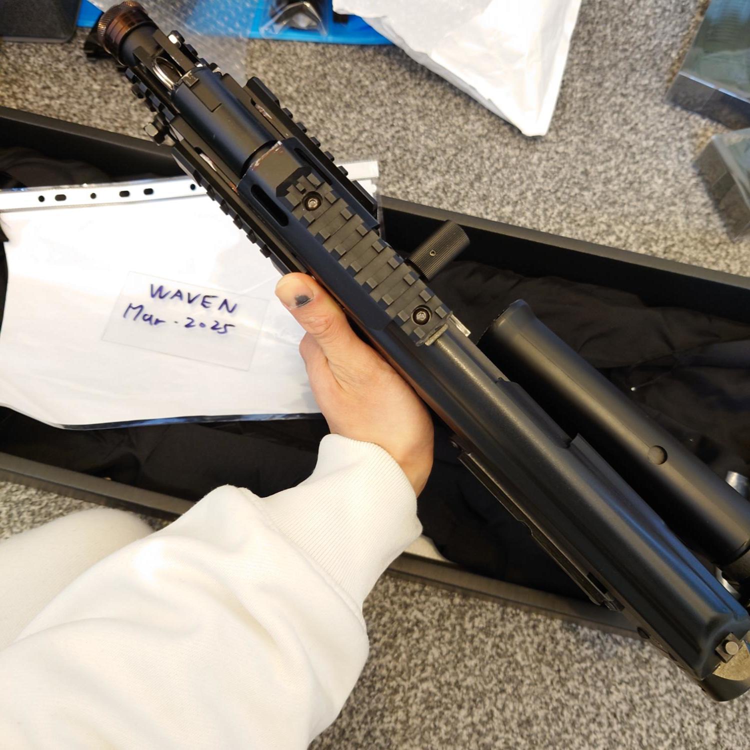 Top rail have been cut short for better grip and weight reduction