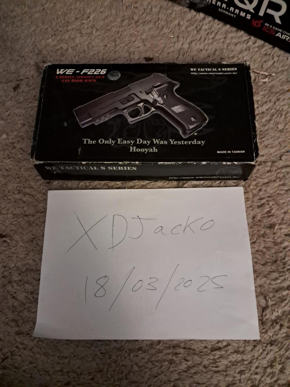 Selling WE GBB F226 pistol. Heavily used and mags have no valves in. Asking for £75 or best offer.