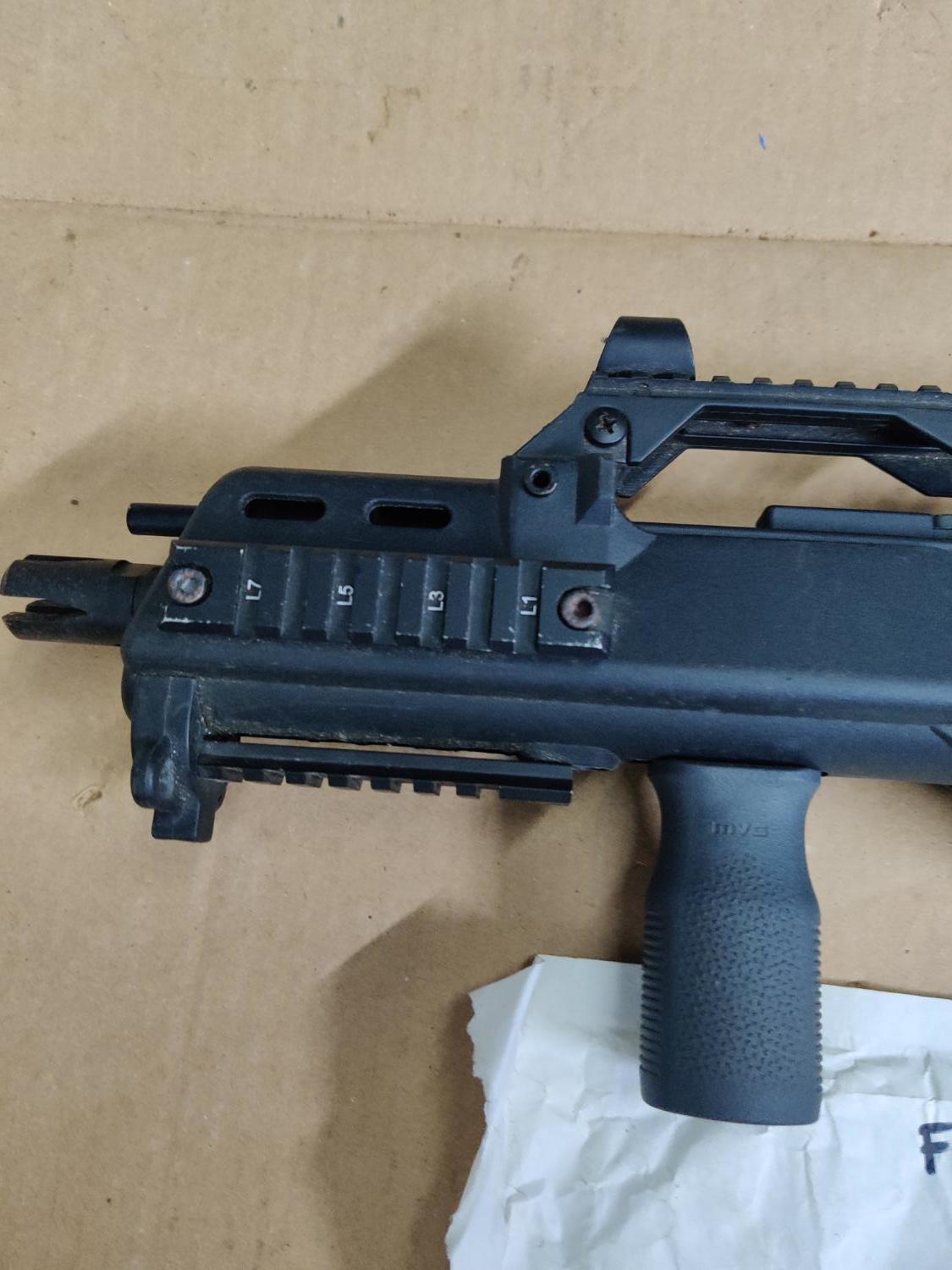 Magpul grip - bolted and superglued into handguard, can be removed but semi permanent
