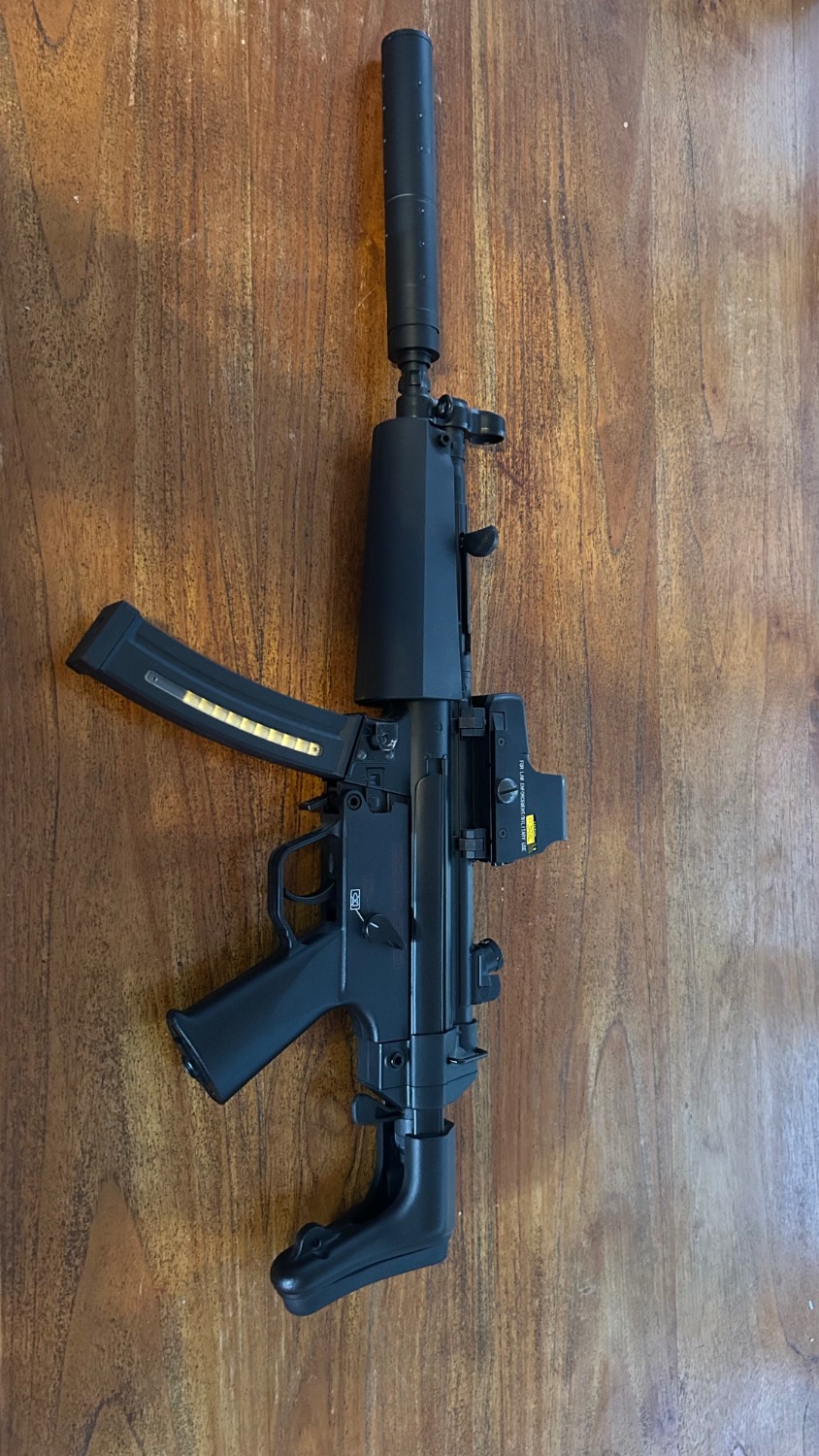 I additionally have 5 spare magazines, a suppressor, a holographic scope and a rail mount. you can choose to buy all of the gear as bundle for £250 or just the original one magazine iron sight gun with the original bbs it’s came with ( I wouldn’t recommend using factory sent BBs as they are poor quality sometimes ) for £180.
