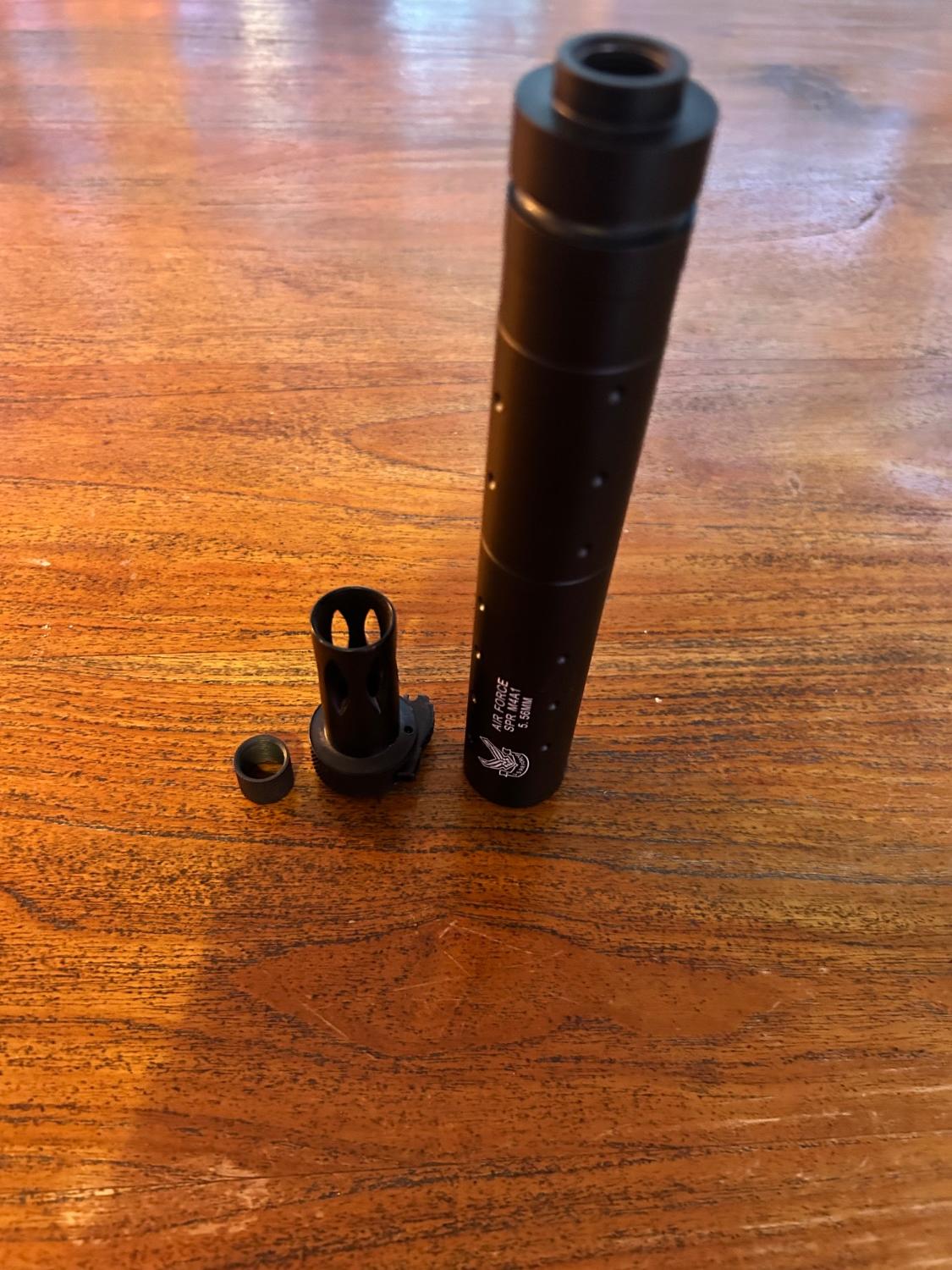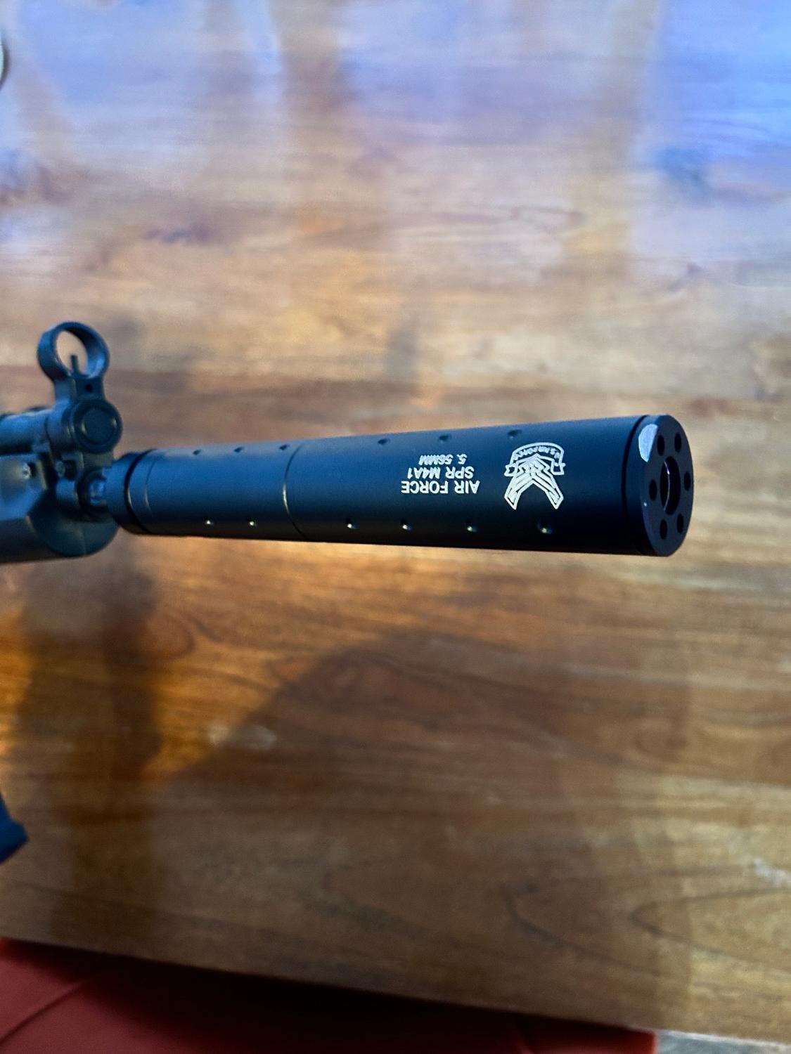 5 extra magazines, a suppressor, a holographic scope, rail mount