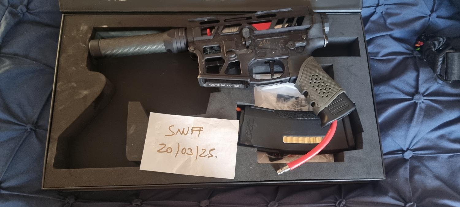 The only mods are a Silent industries hop unit,60′ hop rubber,Q/R backplate,silicone grip cover and 1 point sling.