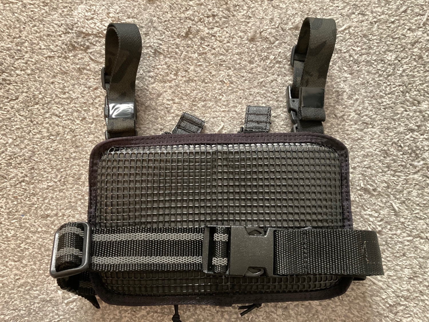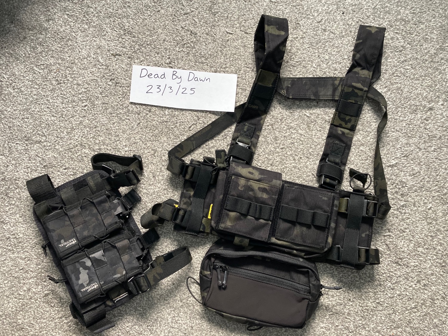 Brand new Emerson micro chest rig includes triple5.56 mag insert and double 7.62 insert 2 x shell holder panels 2 x side wing pouches for radios or extra mags Scrote pouch with Velcro inside