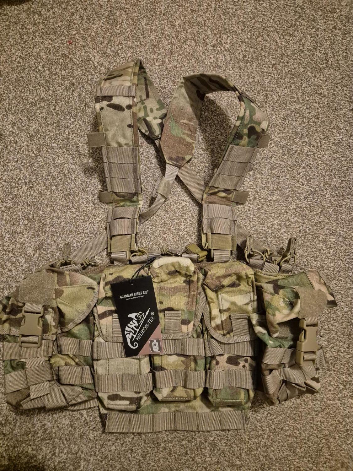 Helikon-Tex Guardian Chest Rig in Multicam. Brand new and unused, with tags. I got this then got a Platatac Peacekeeper Mk5 just after, so this is surlpus to requirements. Online they are going for £160, so this is a bargain.
