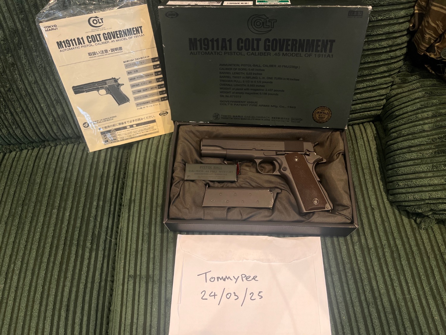 Selling this wonderful classic Tokyo Marui Colt M1911A1 in excellent condition. Easily the snappiest airsoft pistol ever made.