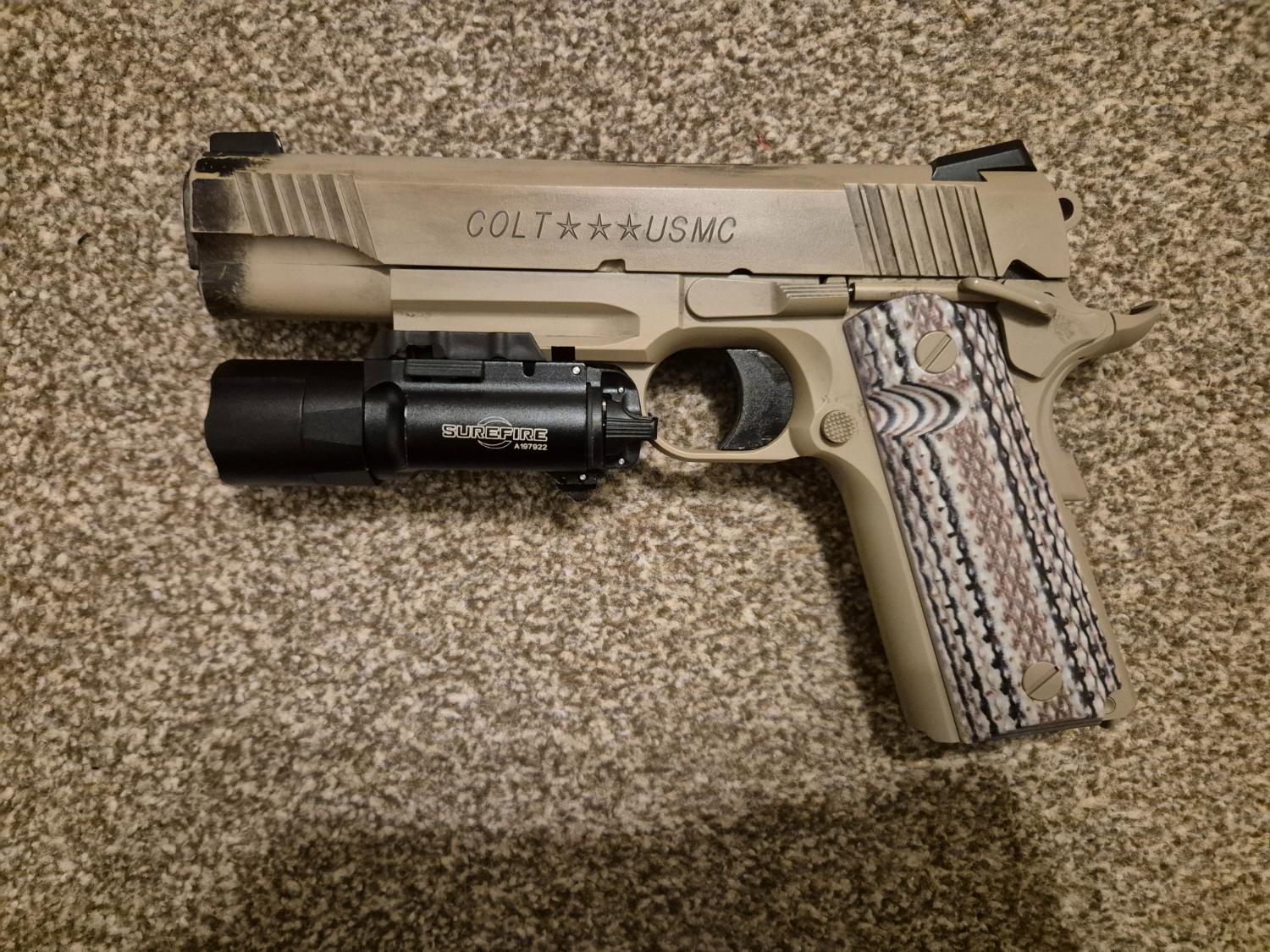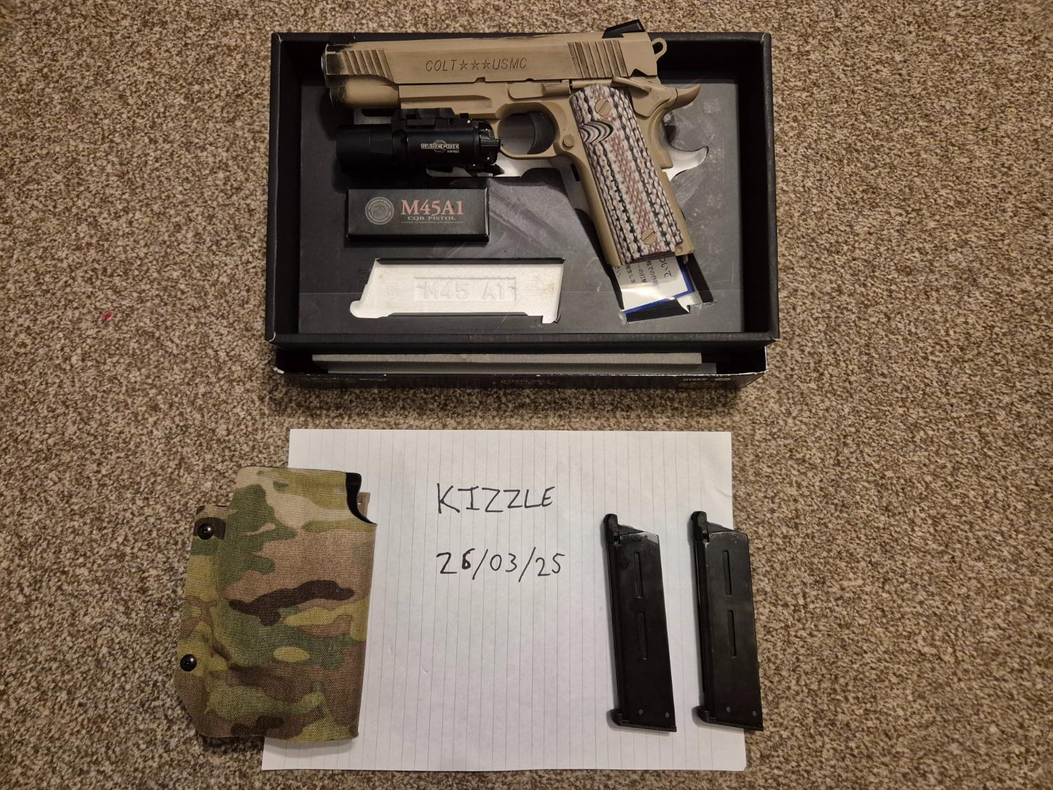 Got a M45A1 in really good condition for sale. Has has had some fake powder burn off painted on to make it look more realistic, which really makes it stand out from how it comes fresh from the factory.