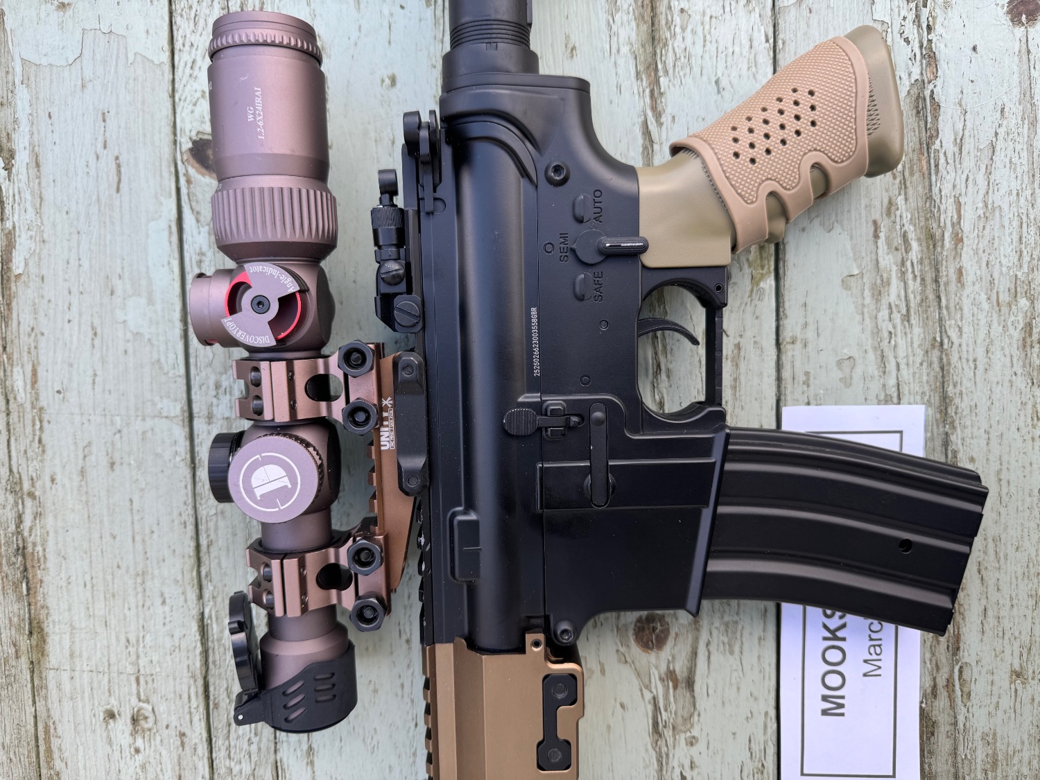 Golden Eagle M4 M-Lok with mosfet, bought a few years ago as a backup and didn’t get round to using it so just sat in the armoury. Full metal AEG and comes with the scope which is good quality and battery,