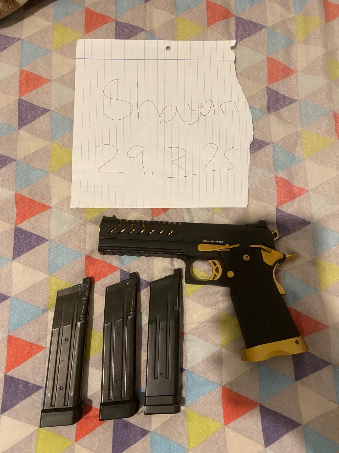 Won pistol in raffle. Small chip lower rail. Nothing affecting use whatsoever. Amazing hi capa. I just want a glock instead.