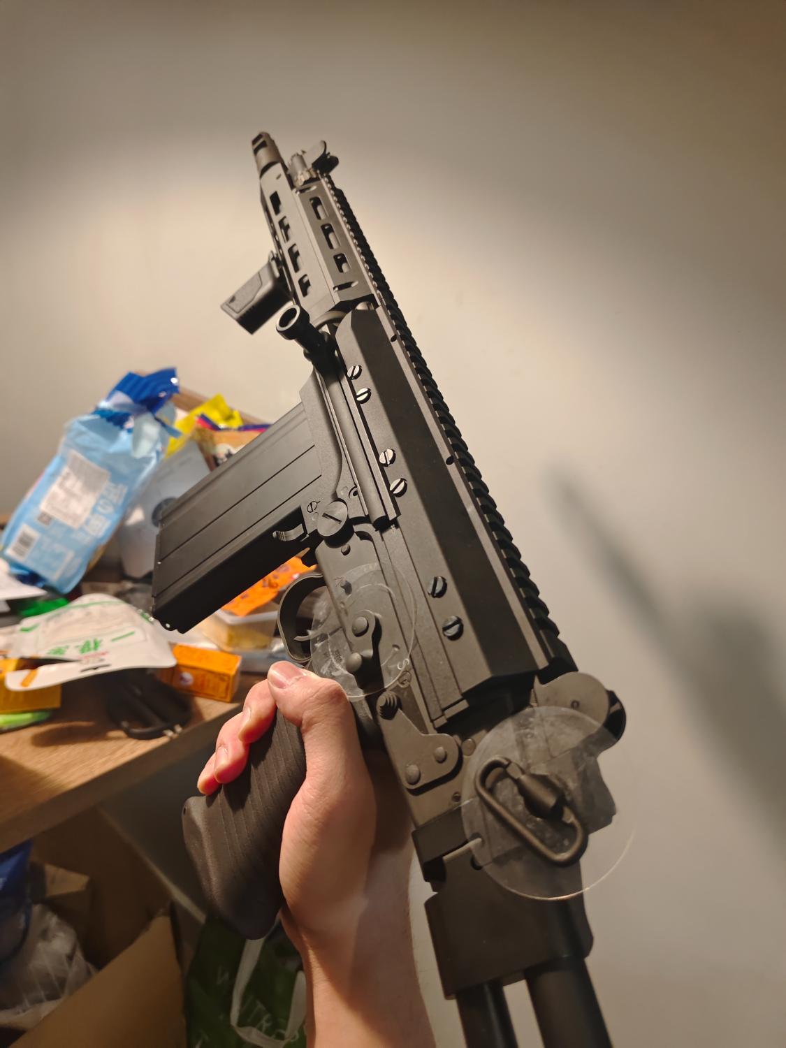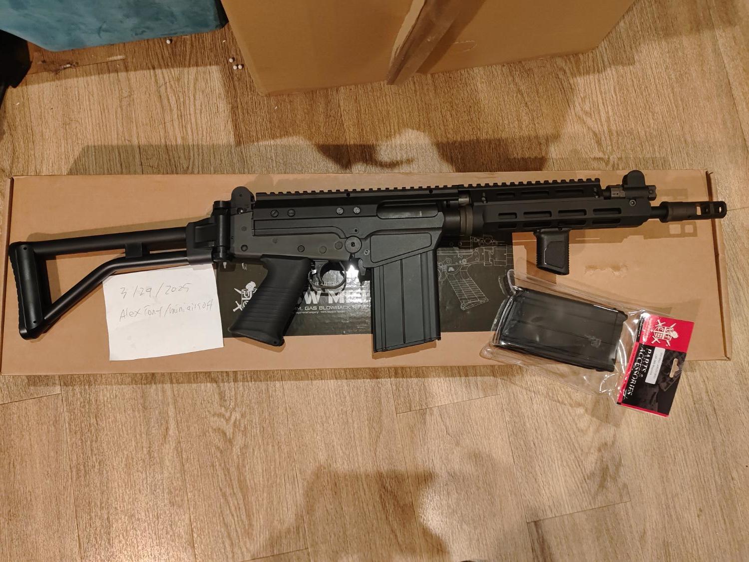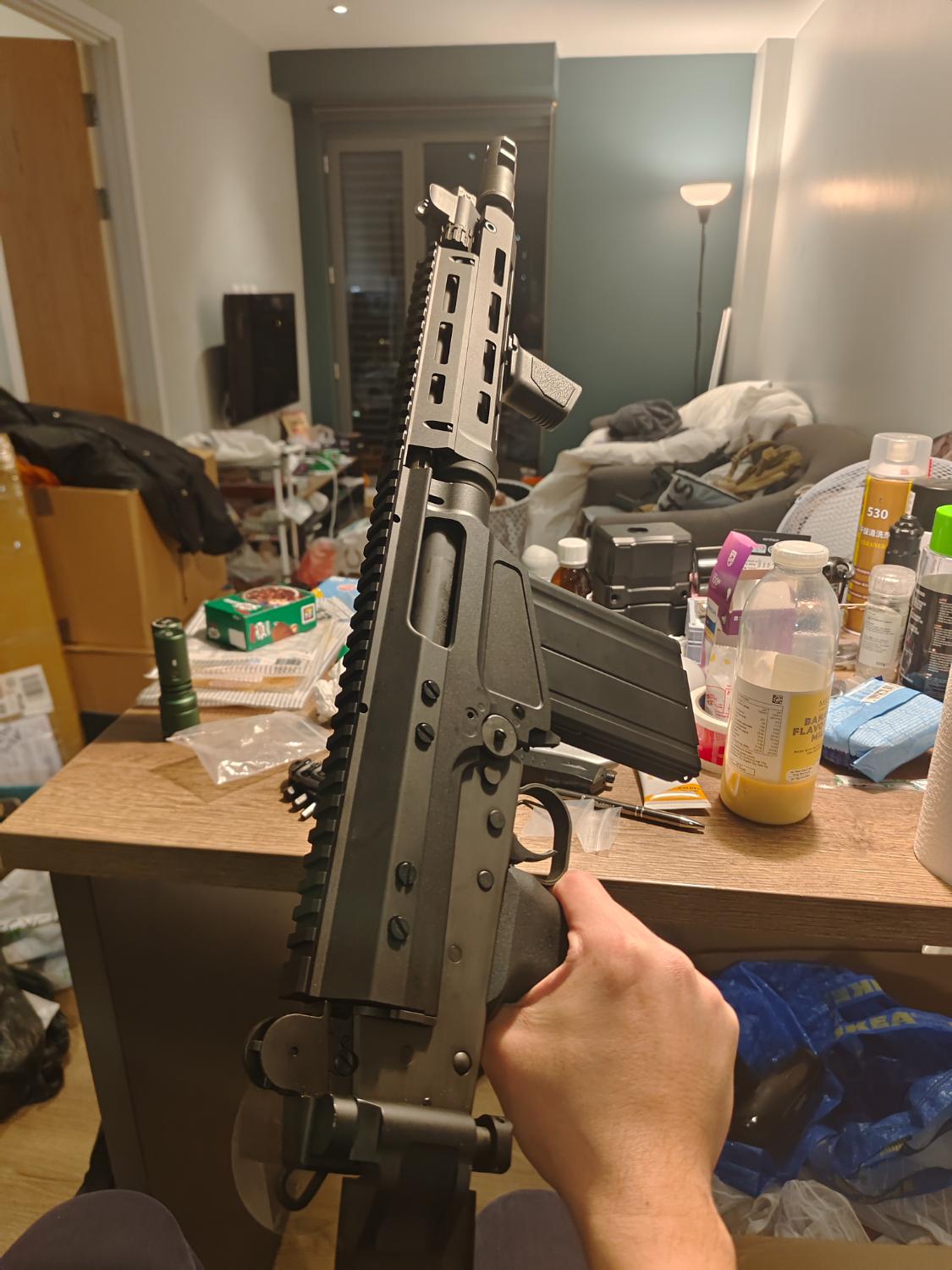 It is almost brand new and selling it because I need the funds for my Easter holidays. So have to sell off my more expensive rifle. It comes with an extra magazine and has a 1913 rail adapter. Also comes with a si grip. Shoots fine at 300-320fps using 0.25 gr bbs