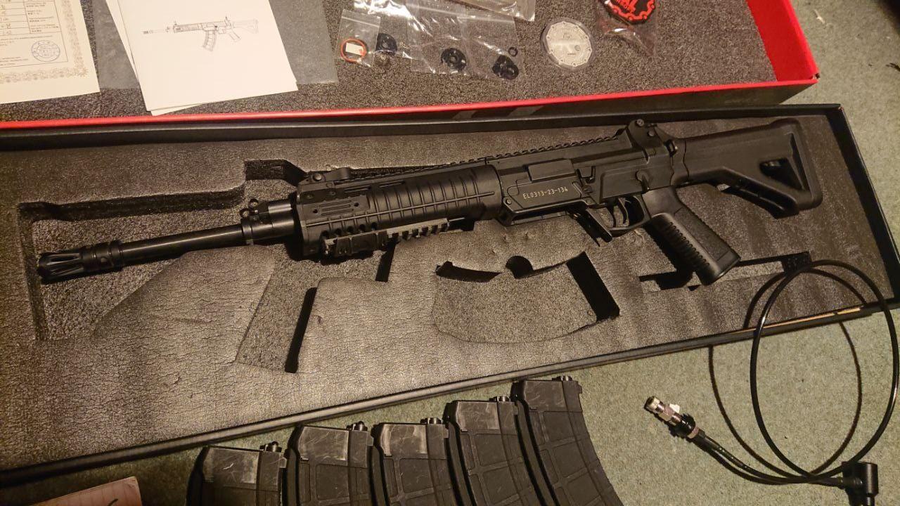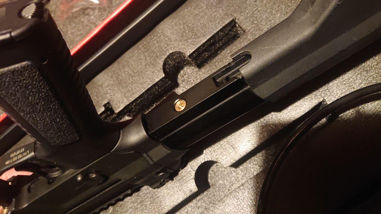 The gun is in near perfect condition barring some very minor marks from garden plinking and handling. The only minor issue is that the release button on the bottom of the stock is missing the small cap that screws onto it. It still works fine. The stock has been filled with a 3d printed spacer since I was using this on a hpa line.