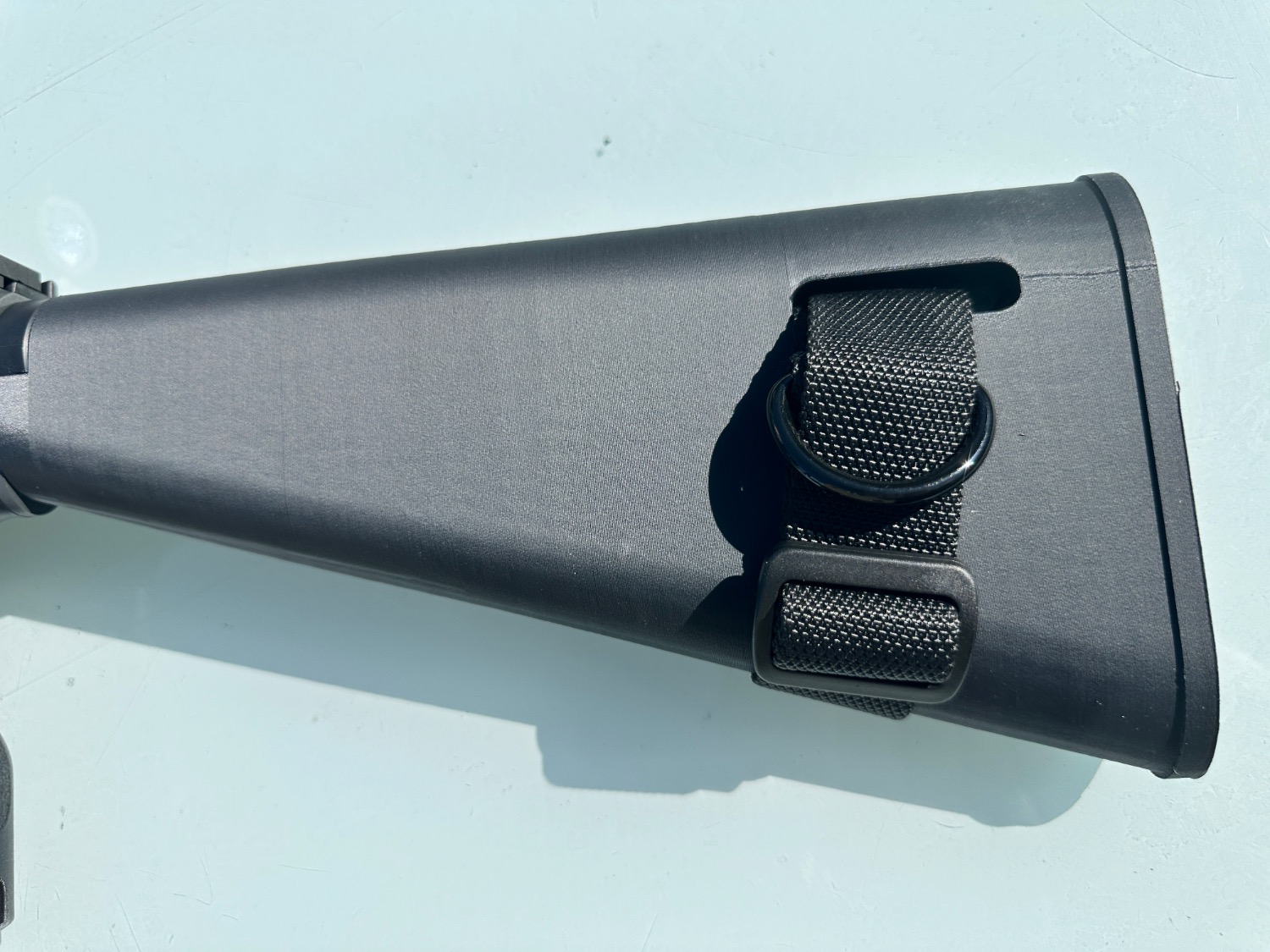 I attached a sling loop strap to mine and it holds the weight of the fully kitted out rifle totally fine, even on a single point sling if you were dodgy enough to use one. Should this come loose over time it atleast shouldn't slide straight out like a Proxy Paige special.