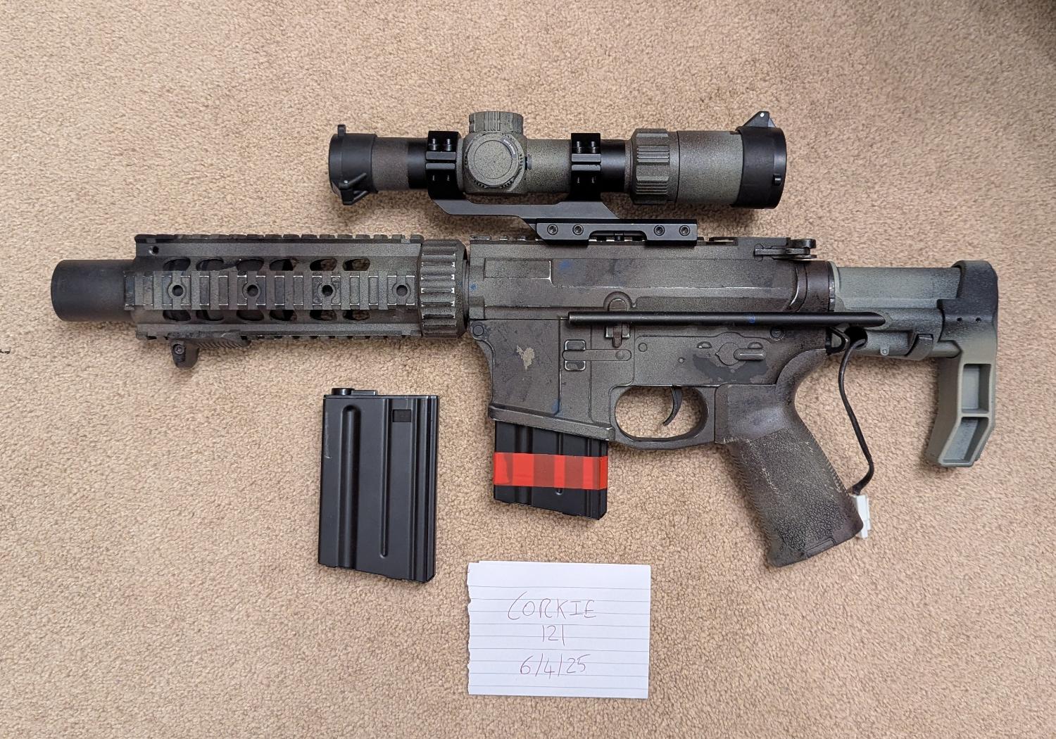 2x midcaps, scope, buffer tube, suppressor cap.