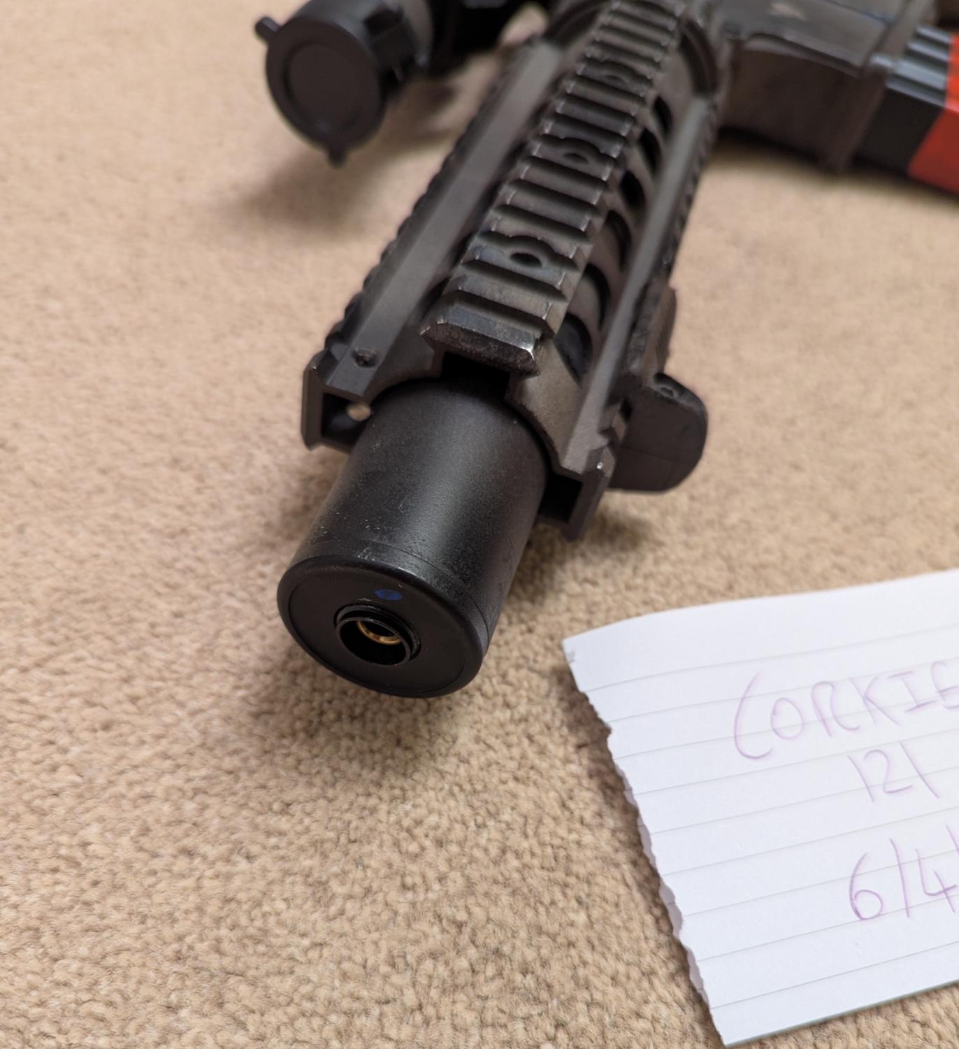 7" KAC FF replica handguard with handstop and mock suppressor for appearance - this is inverted over the outer barrel to keep the length down, will include the cap for the other end for normal use.