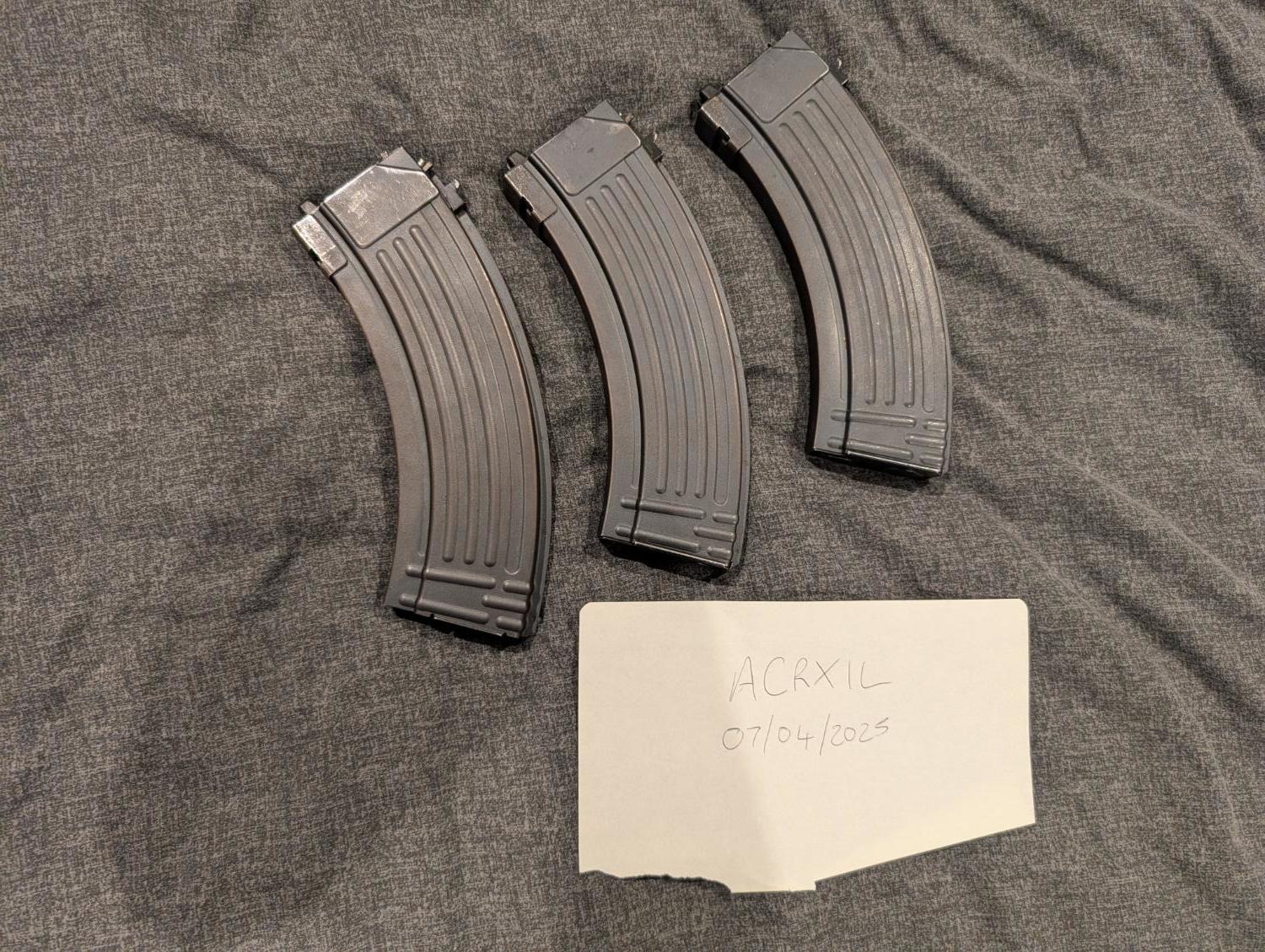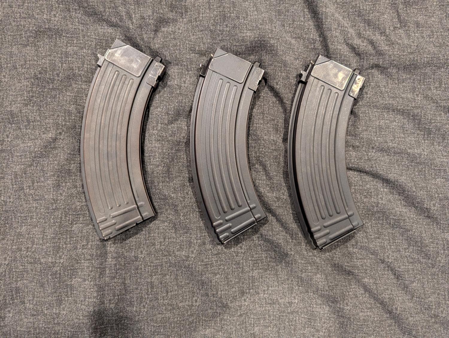 Steel cased magazine's for WE AK, one is missing the baseplate but all are in descent condition and gas tight.