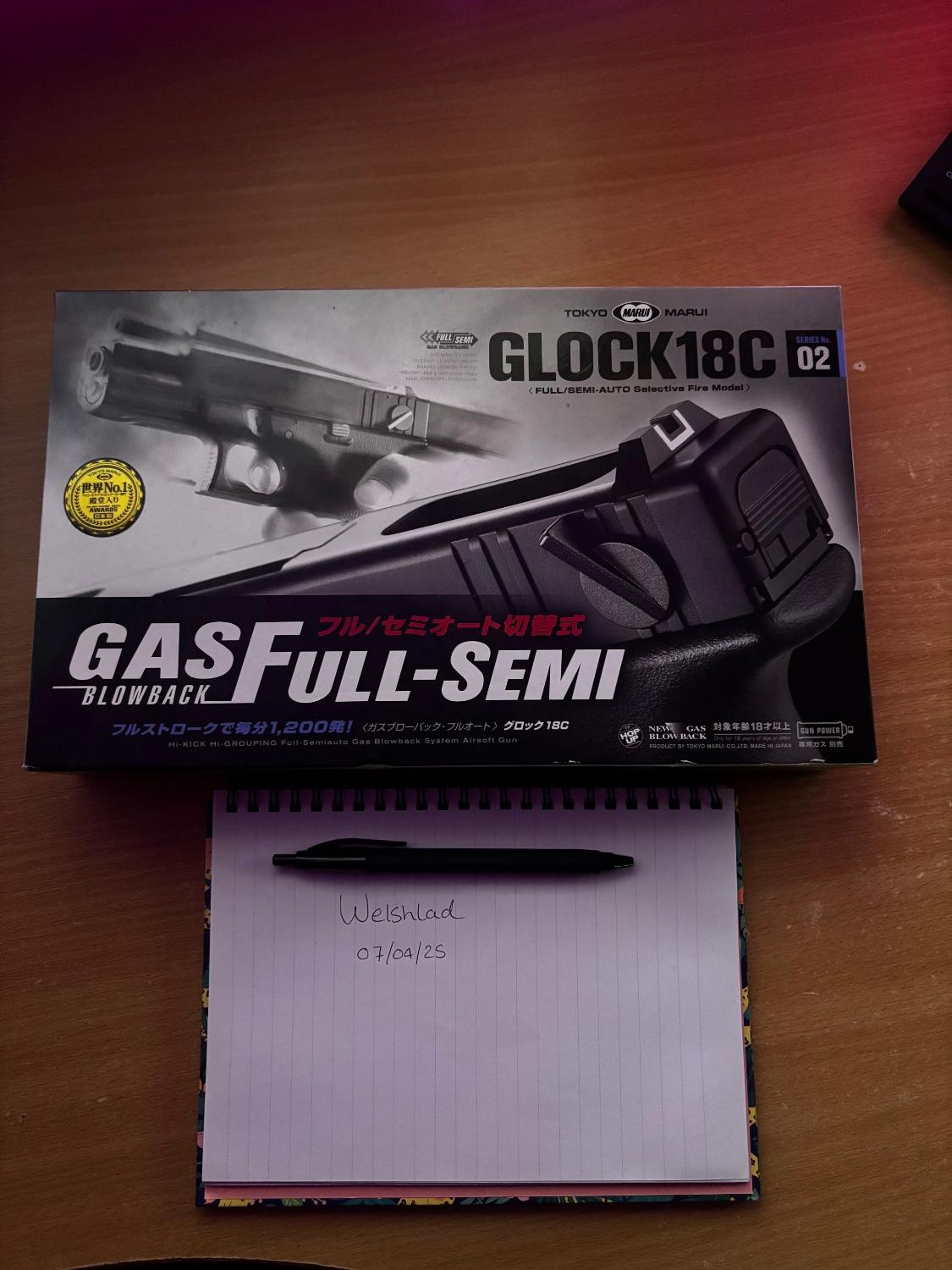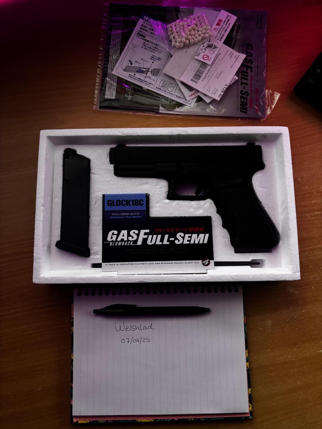 Selling my Tokyo Marui Glock 18C to thin out the collection, the pistol has never been skirmished and has only been used in display and shot only a handful of times in the garden, however the magazine is now leaky as it has not been fired in a little time, everything included in images, feel free to ask questions, open to offers.