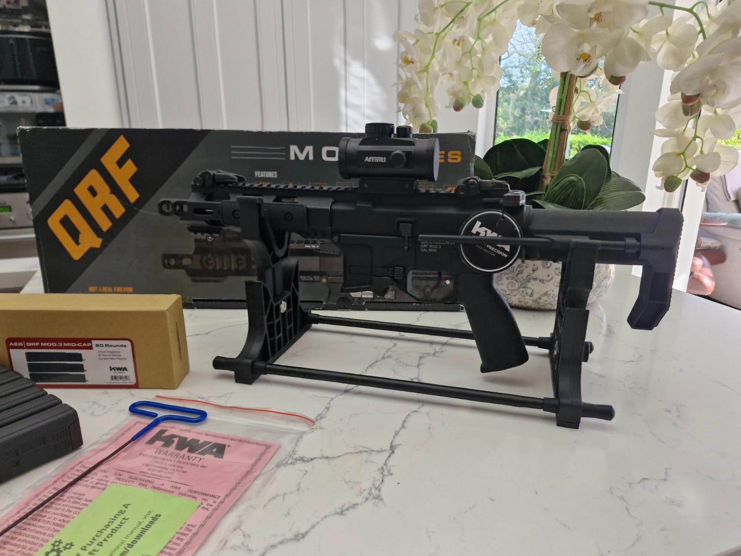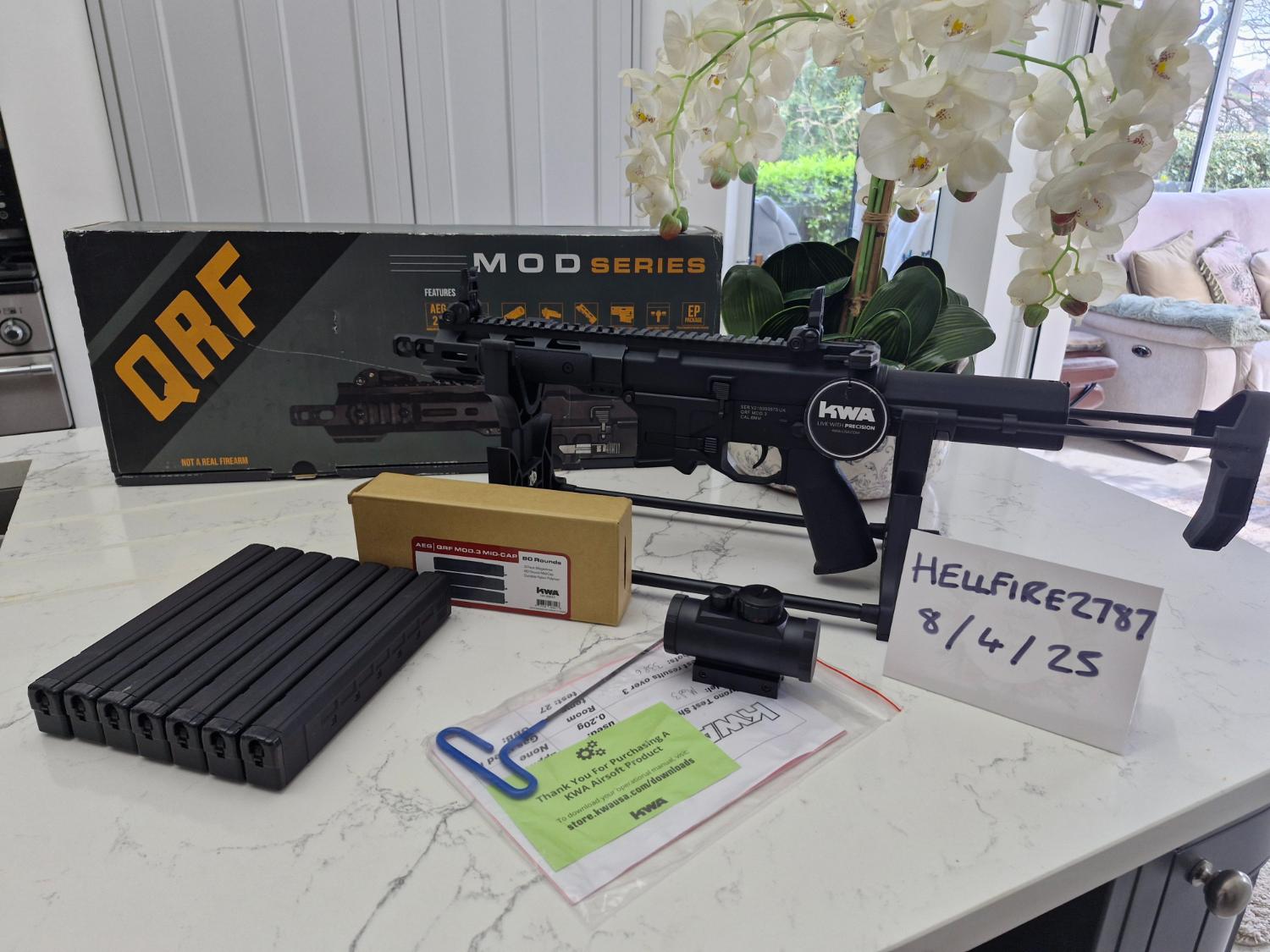 For Sale KWA QRF Mod 3 literally only skirmished twice so in excellent condition comes boxed with 7-80rnd kwa mags and red dot , i have noticed a mag feed issue though the 2nd time i used it, have googled prob and lookaq like a simple fix but over my head as i dont tinker much with aeg's, so selling as is.