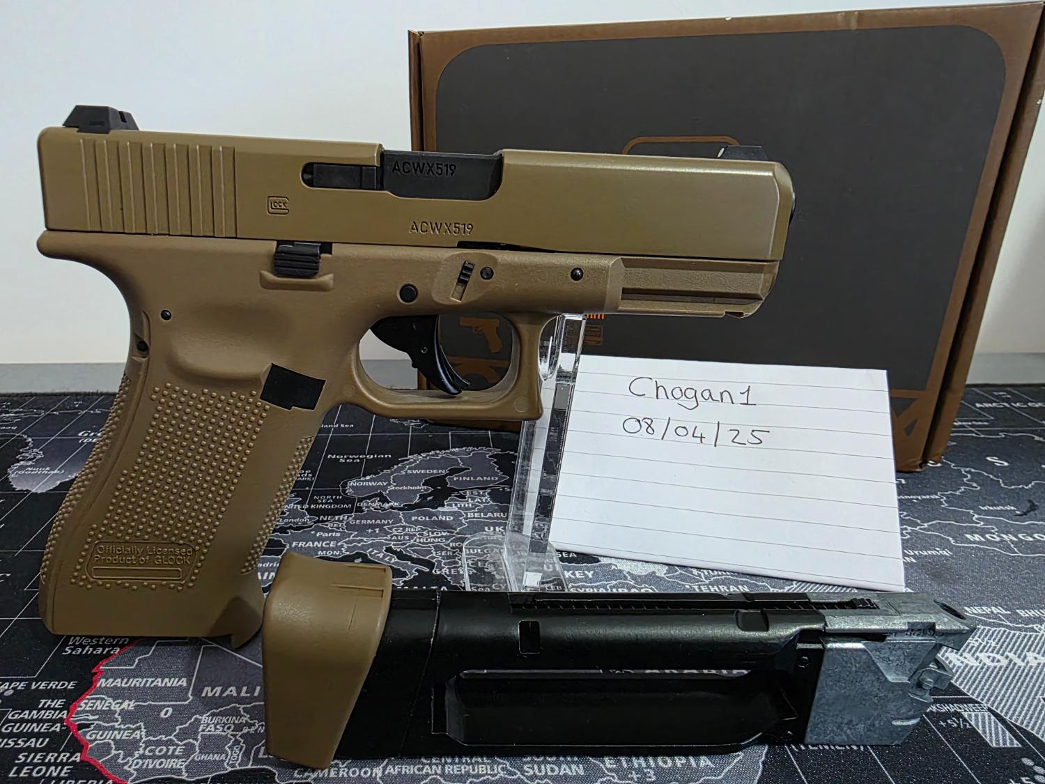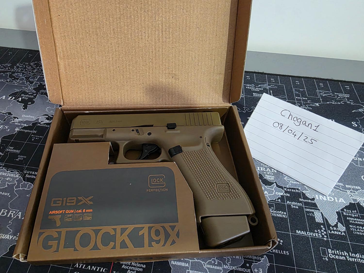 Excellent condition no damage, never seen a game day maybe only had 100 rnds max through it. GLOCK describes the G19X as its first “crossover pistol”. It combines the full-sized frame of the G17 with the compact slide of the G19. A new feature is the color, Coyote, which distinguishes this pistol from other models. This licensed CO₂-powered airsoft version from Umarex is an authentic replica which adheres to the original in every detail. It fires 6mm BBs with a maximum of 1.6 joules, and the blowback delivers a powerful recoil.