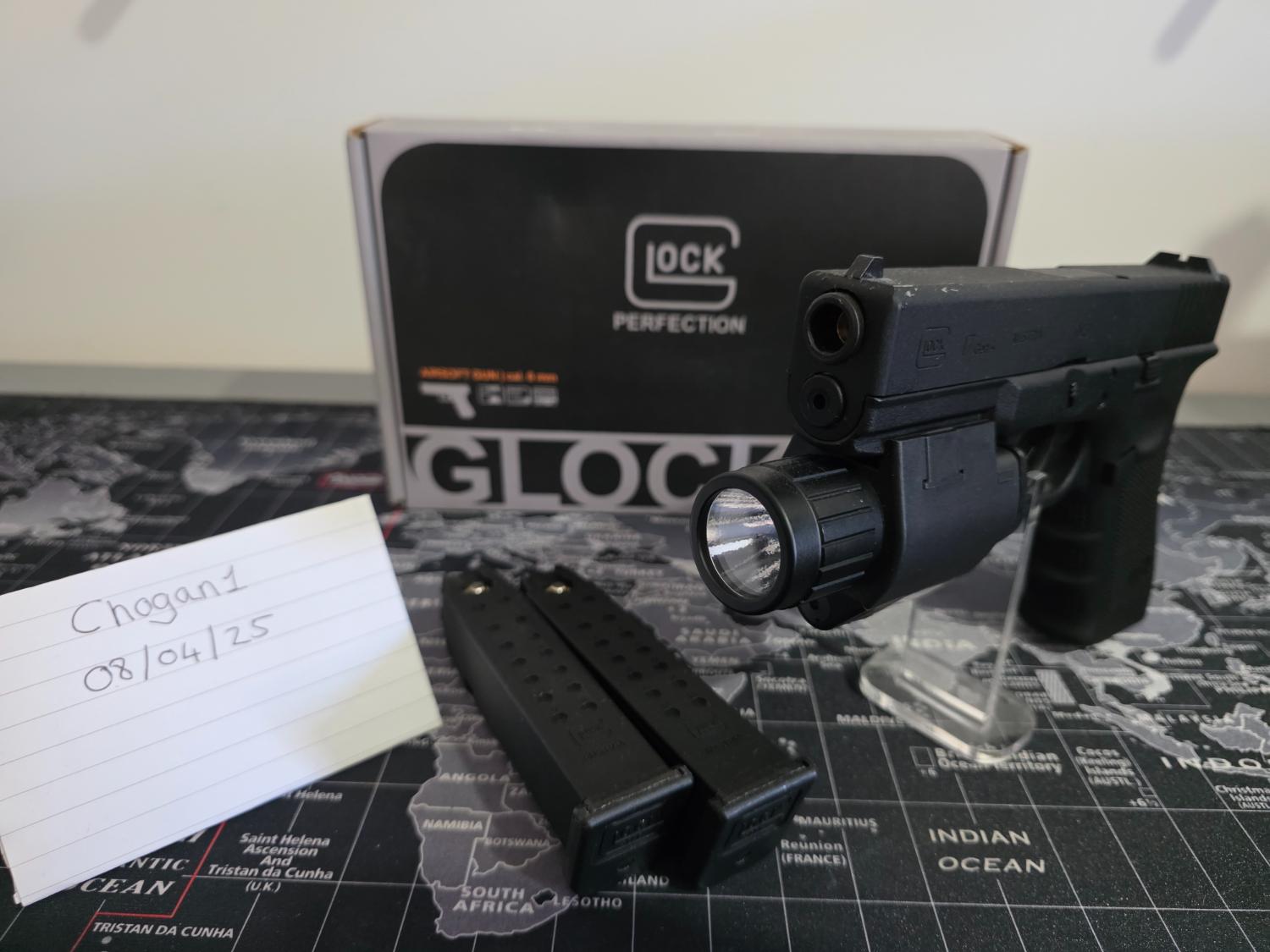 Excellent condition a few light scratches on rail, comes fully boxed with and additional mag ( 2 in total ) plus a torch light/laser combo attachment.