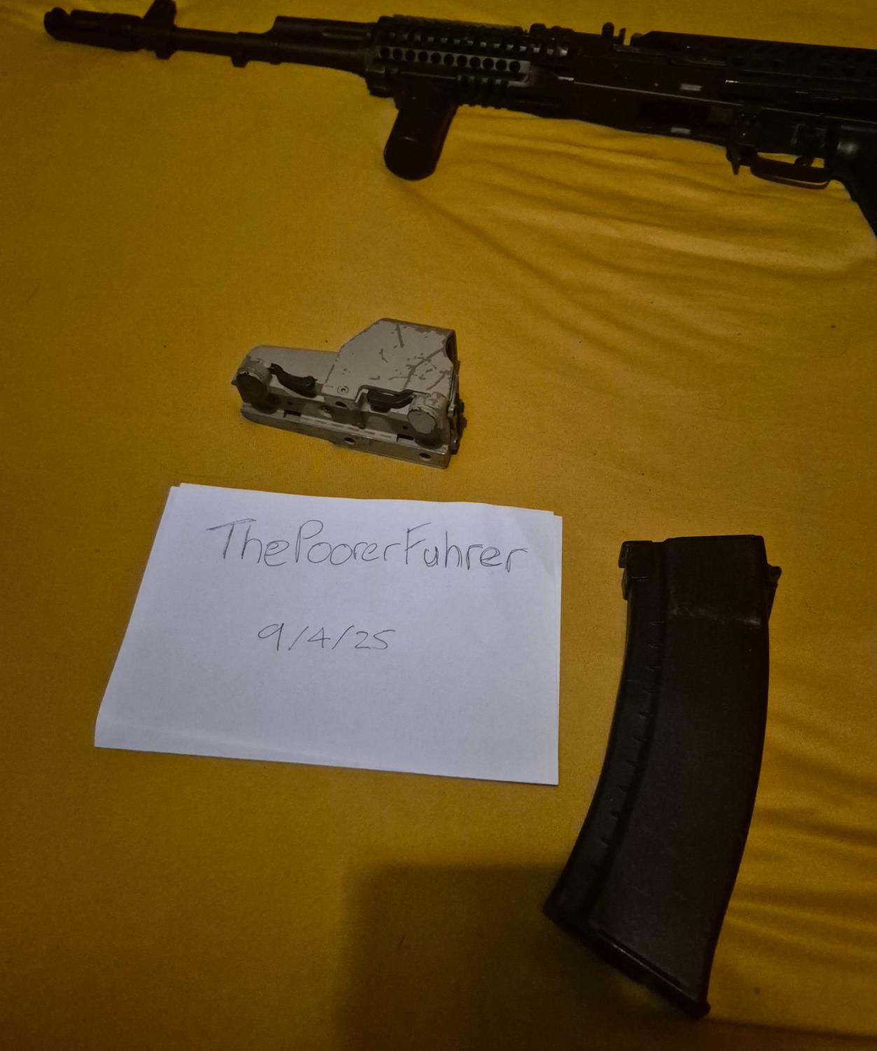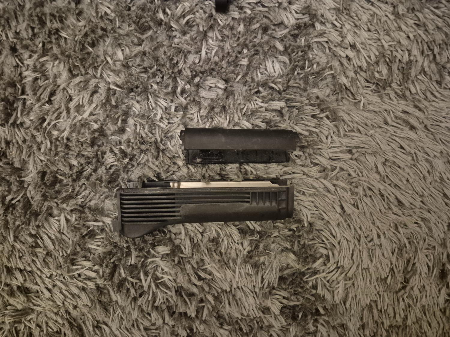 The Handguard and dust cover have been spray painted multiple times so a little bit of the previous paint is visible