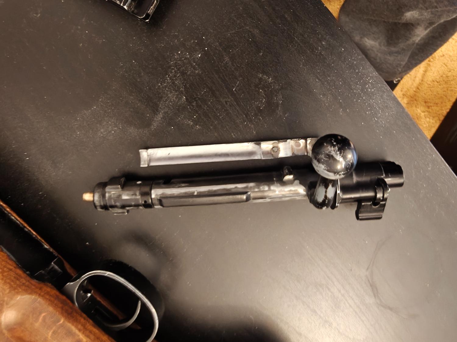 The front sight was missing and previous owner taped on a luger sight. From a distance you couldn't tell this was the case.