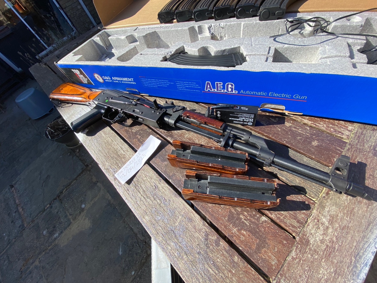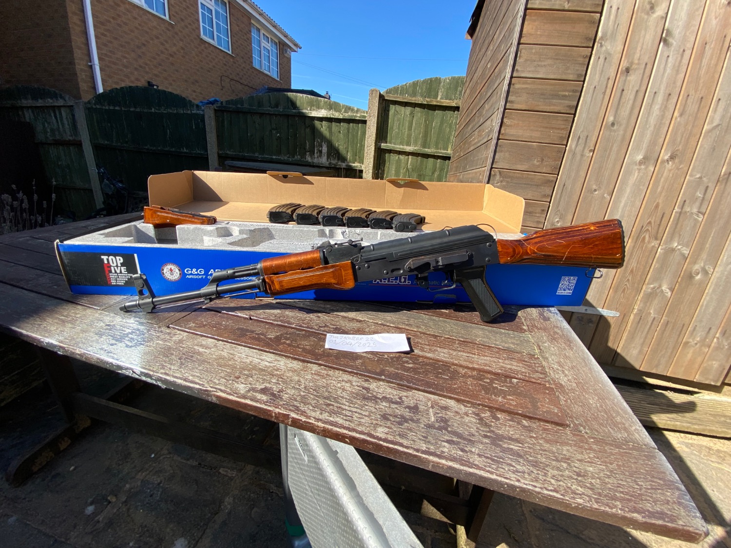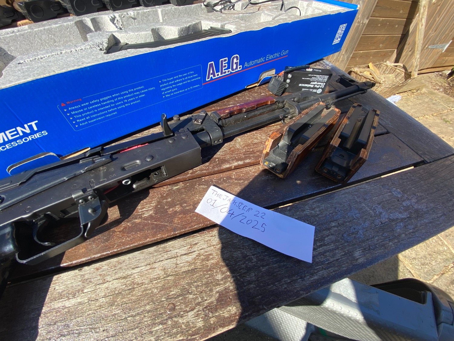 The battery’s for this are built into the hand guard comes with 2 which should be plenty for a days game had good ROF on this as well