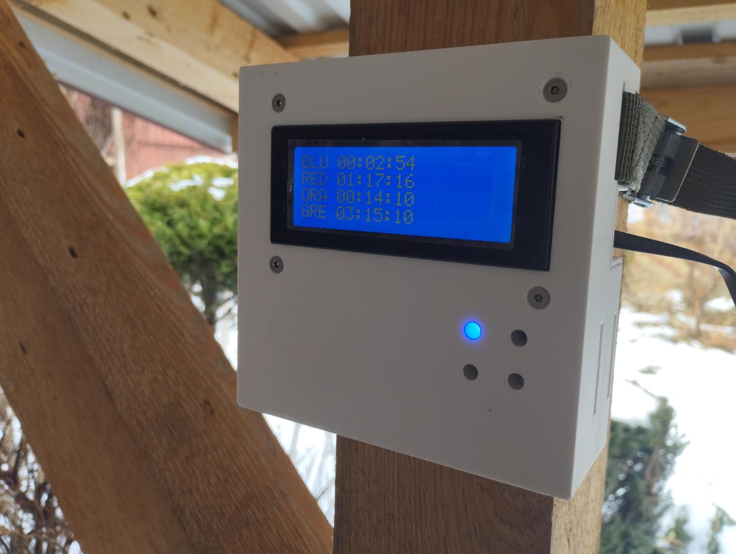 That means you can use the device immediately after delivery. Usage is very intuitive. Device is not waterproof and should be used indoors or outdoors but not in wet, high-humidity places. All components are inside the PLA 3D printed enclosure and mounted together by screws. You are able to mount the device on the tree, pipe, joist by its tie-belt with spring mechanism that can lock it.
