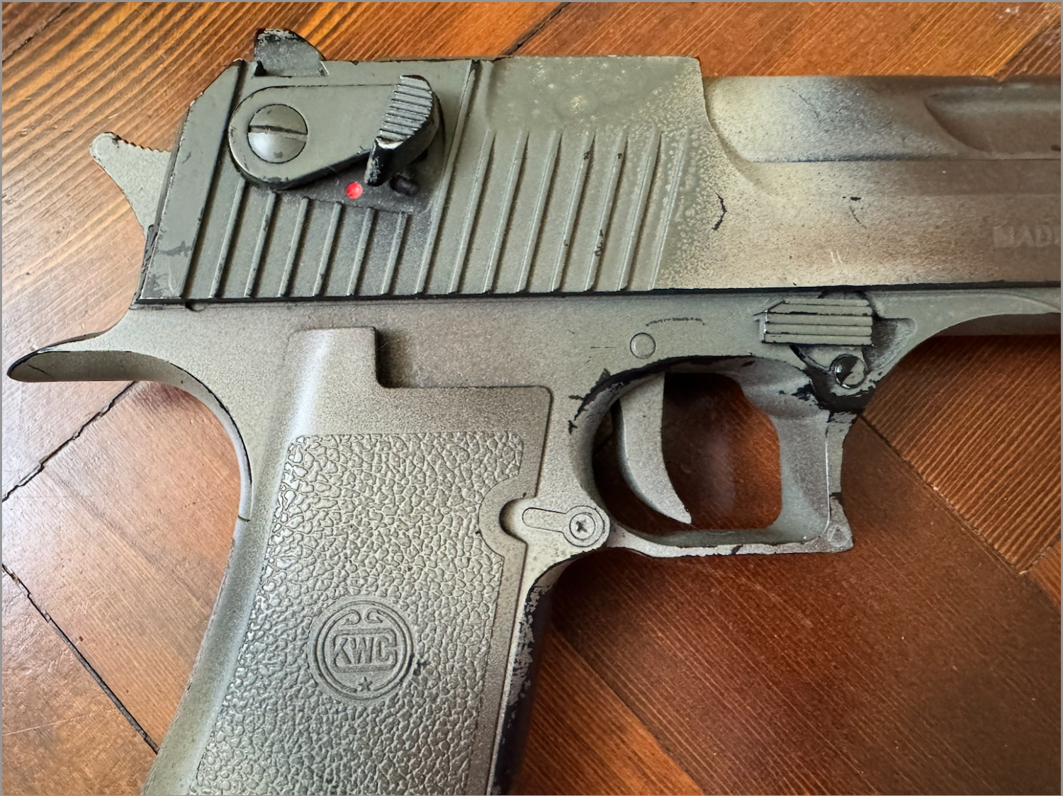 For sale is this beautifully camo-painted and weathered KWC Desert Eagle DE.50, a CO2 version with a metal slide.