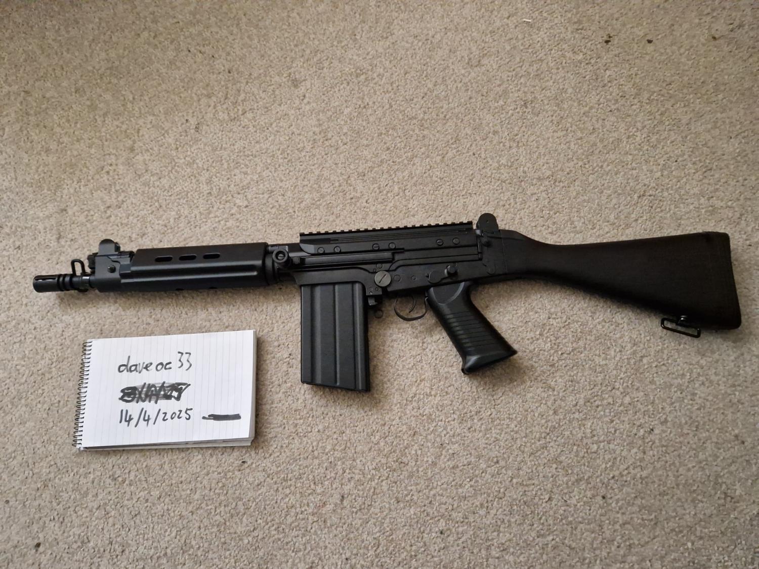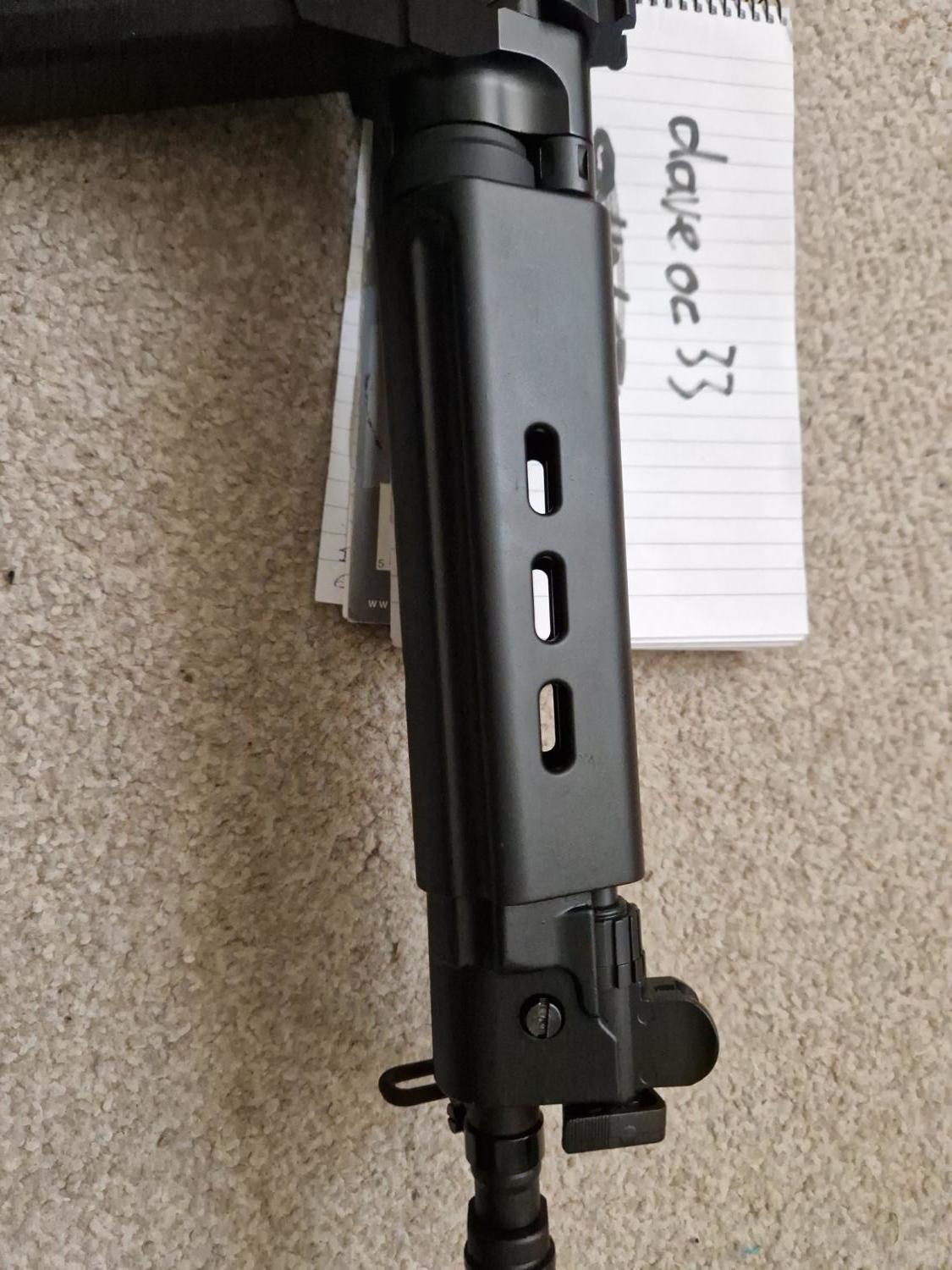 This is my JG Sa58 / lk58 electric blowback aeg. It's in pretty much mint condition. It used to be a two tone ( on handguard and upper rail) but the two tone has been removed and it's resprayed with matt black. You can't tell it used to be two tone and any wear won't reveal bright paint.