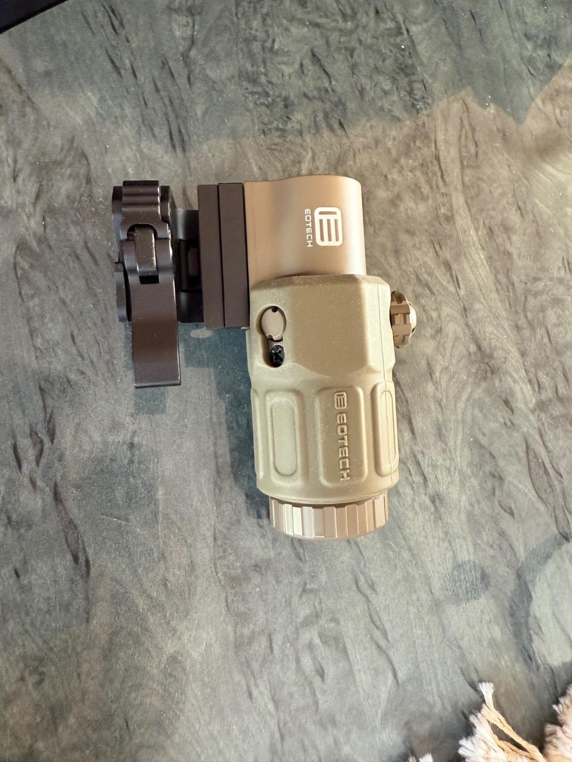 This is the tan cerakoted (not the anodised one) version of the Holy Warrior G33 3x magnifier. Brand new, never used. Comes with its box.
