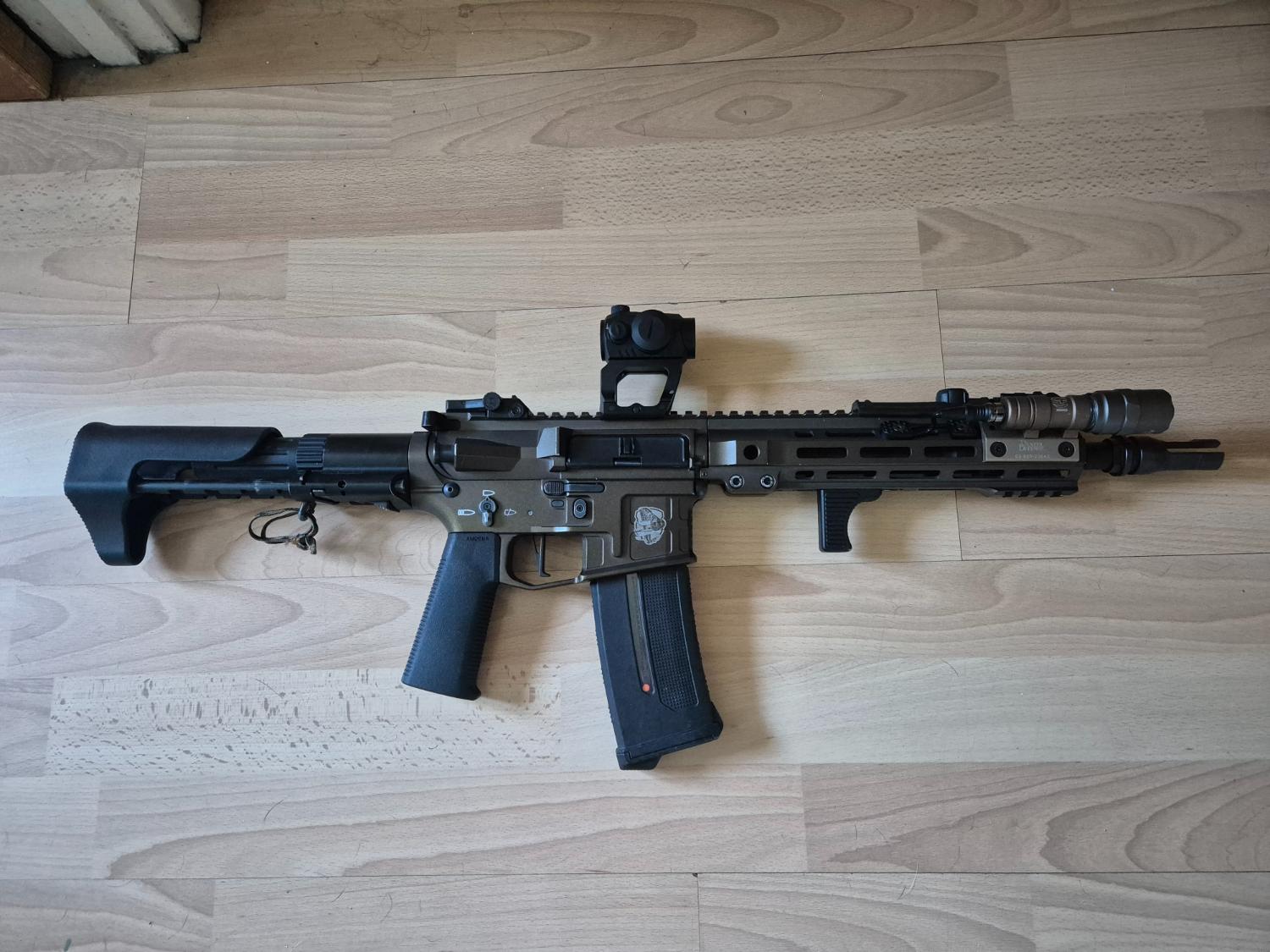 Red dot, light, battery, magazine