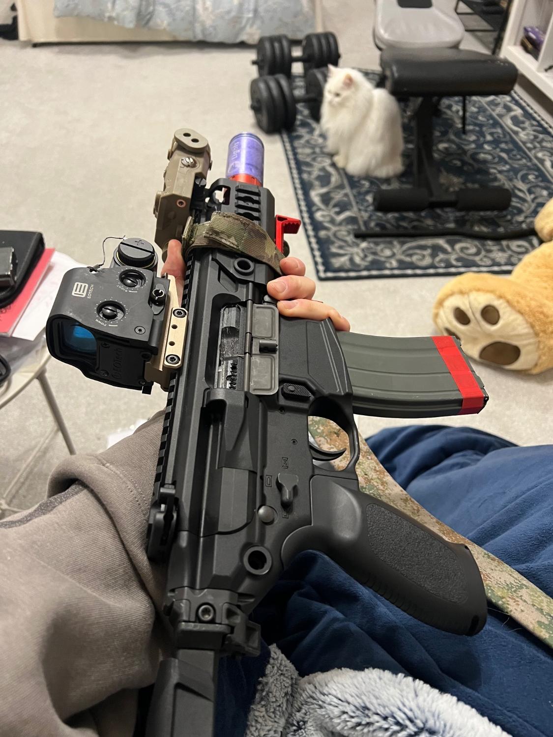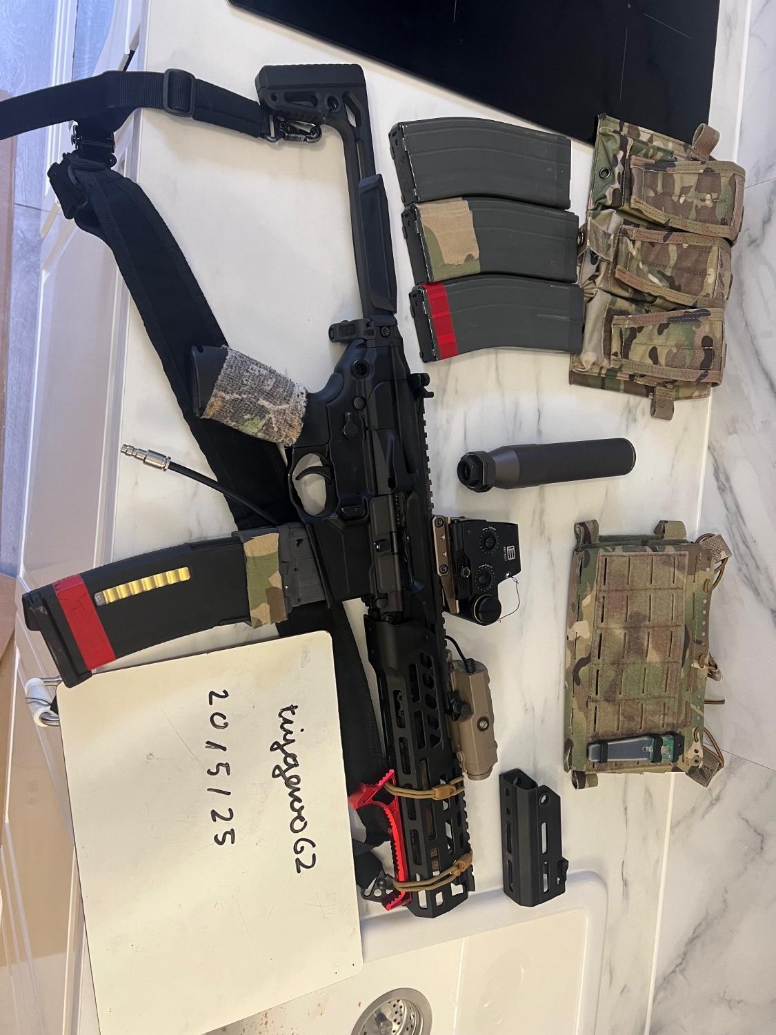 Some attachments will also be included; repro eotech (reticle is off centre though), black sling, MCX suppressor with inner barrel