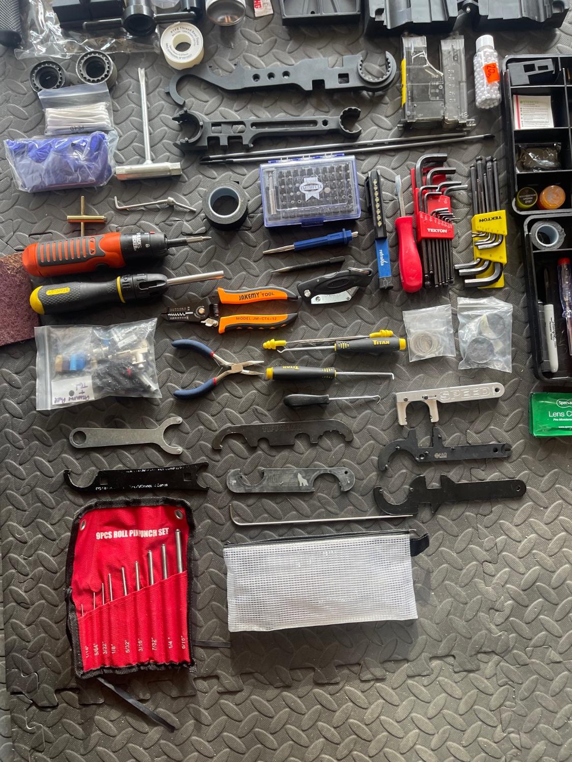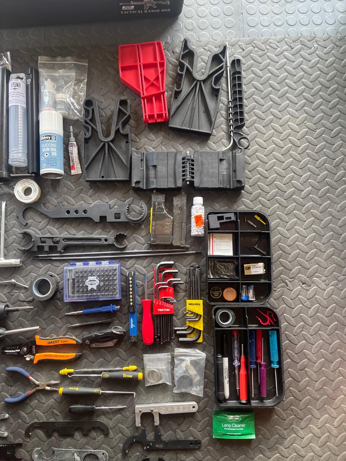 For sale, airsoft tool kit which I have built up over a number of years. Include tools such as TM MK18 barrel nut removal tool,HAO PTW tool, Tamiya cera grease ect. Please look at pics for more info. Everything less the RIF is included. Collection is possible from Ashford, Kent. If collecting, I’ll sell for £180