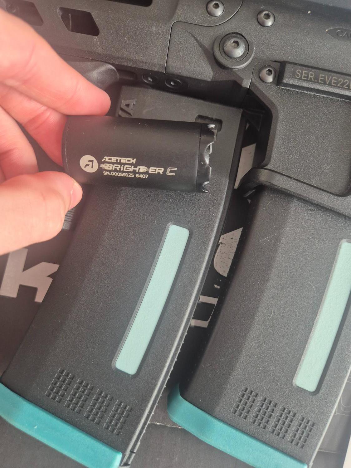 Only used this a handful of times. Awesome weapon with the titan in it. Adjustable FPS spring , comes with tracer and 2 mid caps and a battery.
