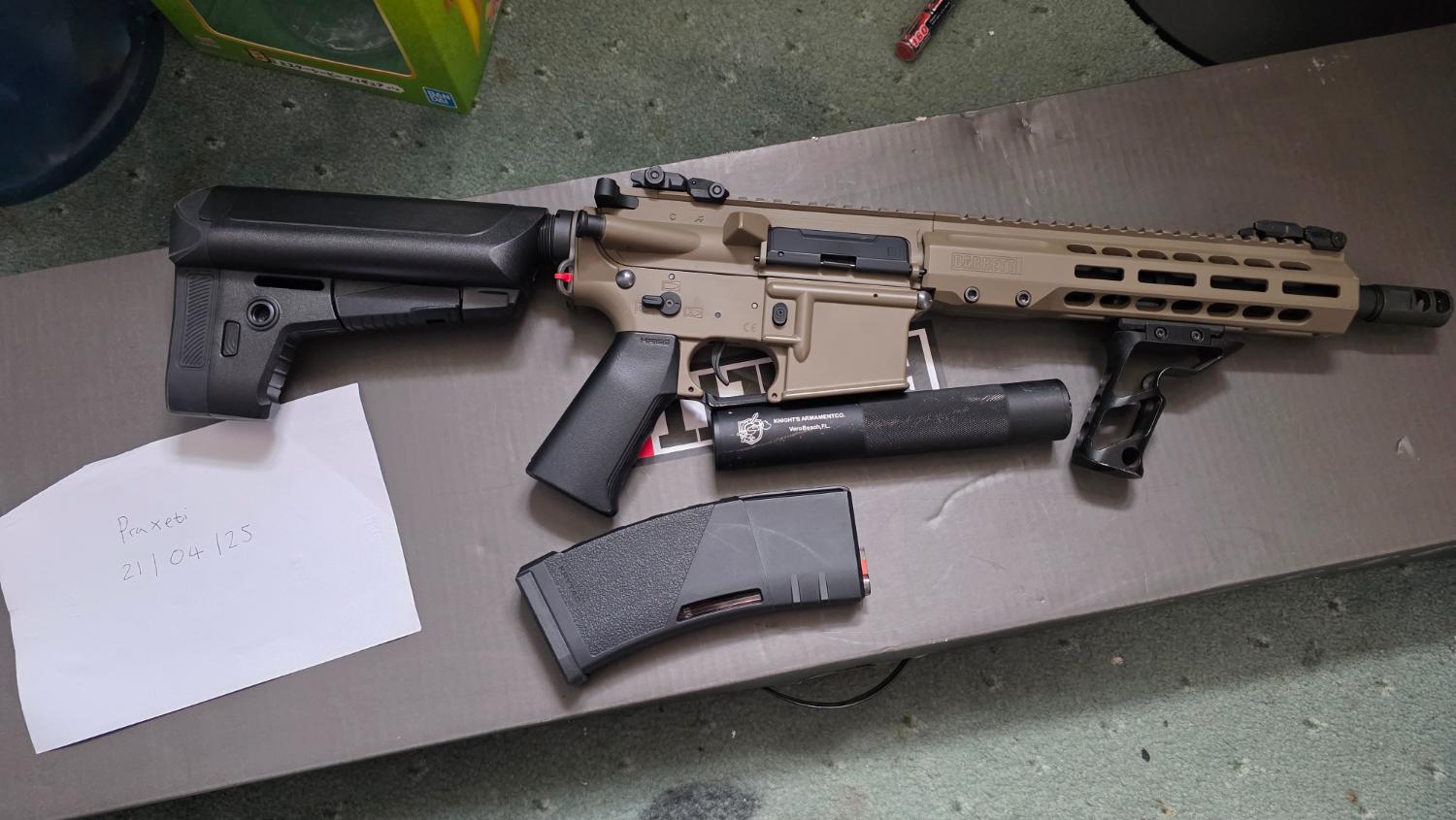 Comes with skeletonised foregrip, mock suppressor and original krytac midcap