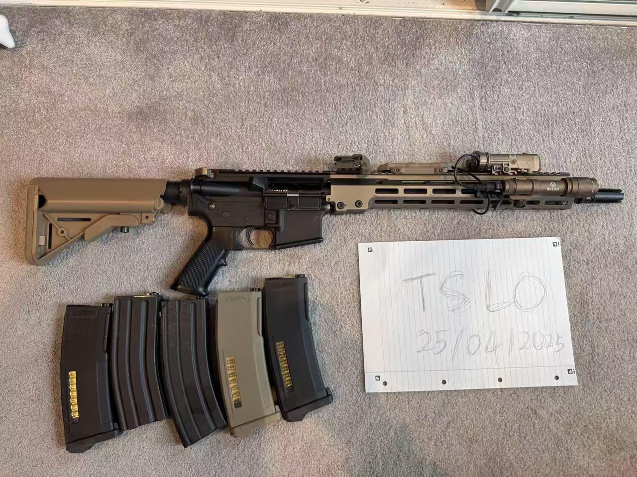 Price includes one suppressor (Angry Gun), 3 PTS NGRS mags, and 2 original mags. Laser box and torch with mouse tail connector.
