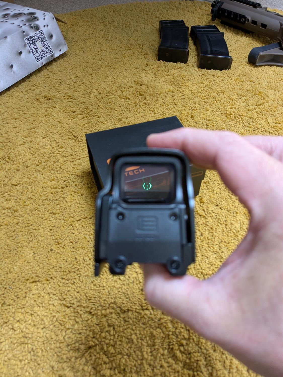 Eotech 558 clone in brand new condition, never been used. Red and green reticle, quick release mount. In branded box, no battery included.