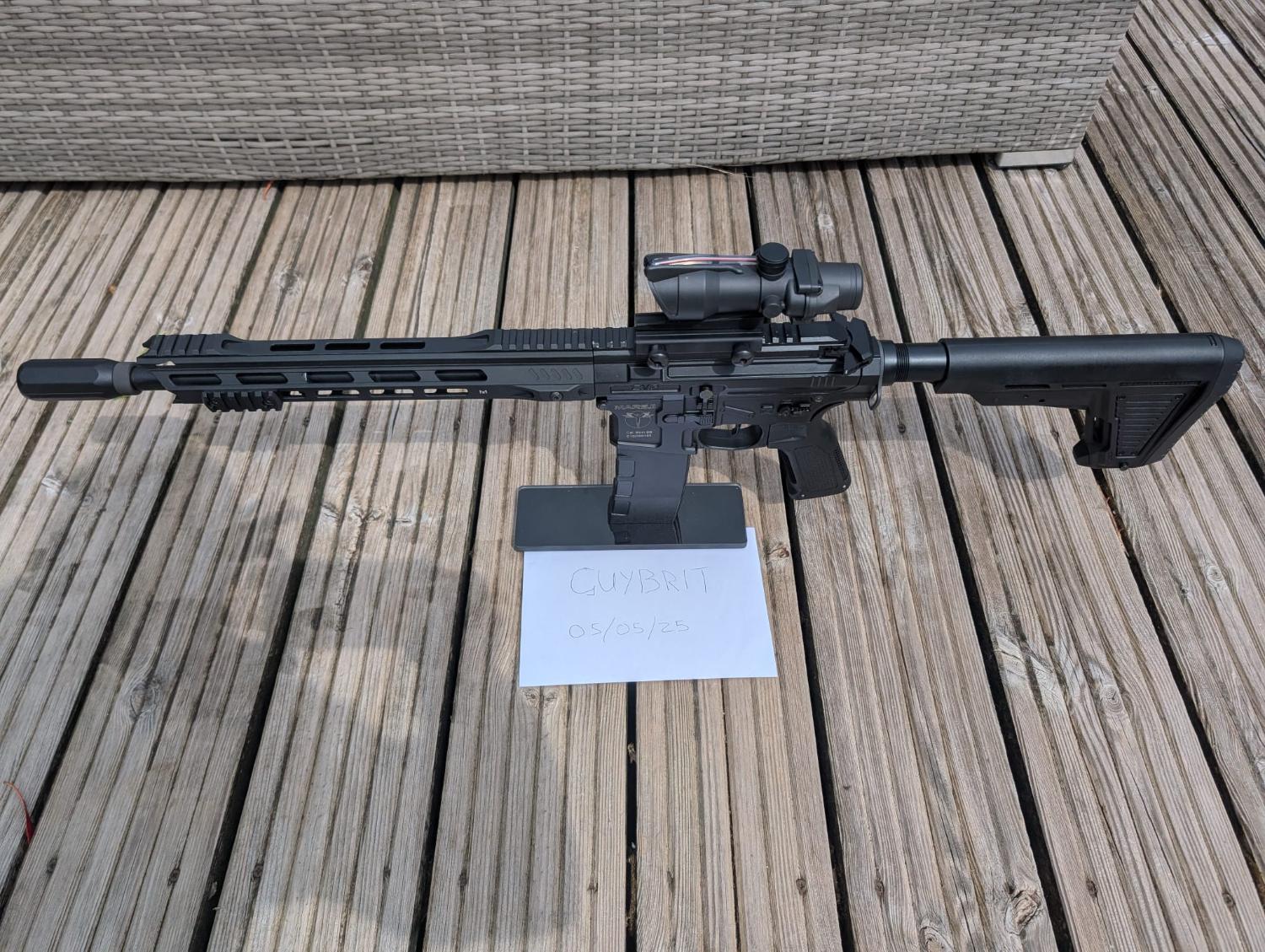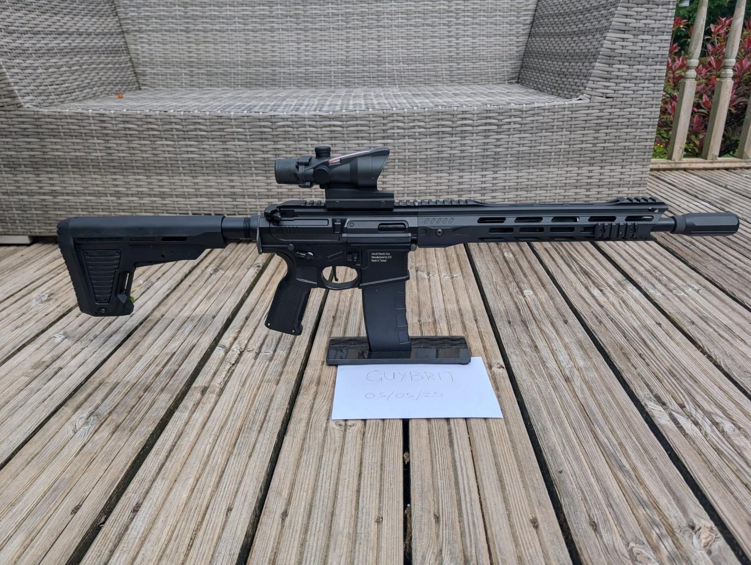 Custom build based on the ICS Mars2 featuring upgraded internals (master mods piston and nozzle, madbull tight bore barrel, 16:1 gear set, high speed motor) ICS split gearbox, Perun V2 Hybrid mostfet with Clicker.