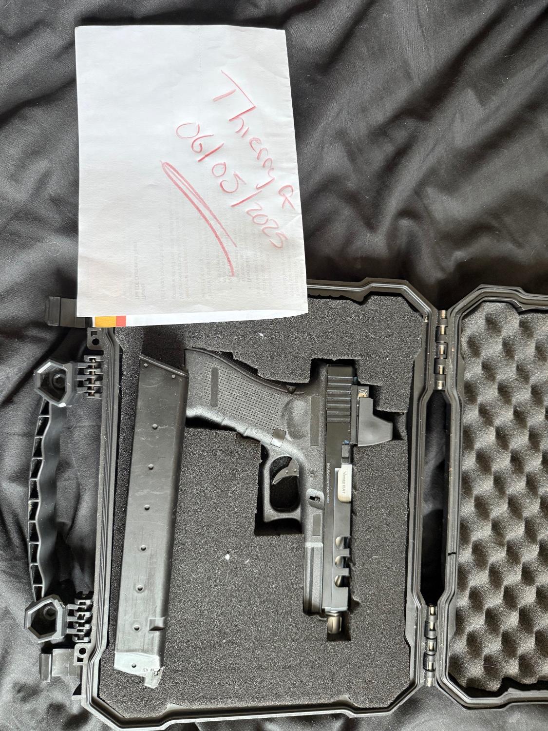 comes with case, red shot site and extended mag