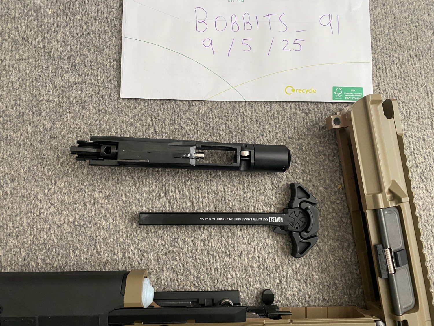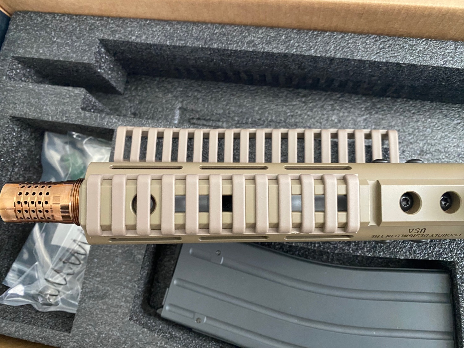 1 x magazine, 2 x rail covers, extra buffer spring