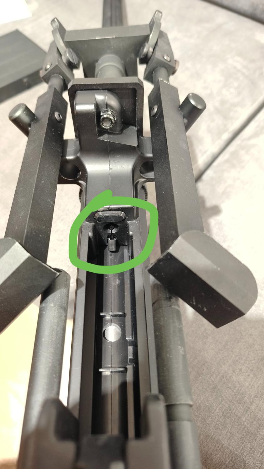The gun can fire itself - the spring mechanism works as it should, but cannot feed BBs properly from the mag. The tip in the chamber, as circled in green in the picture, is supposed to release the BB spring in the mag when installed, but it is made of plastic and is broken