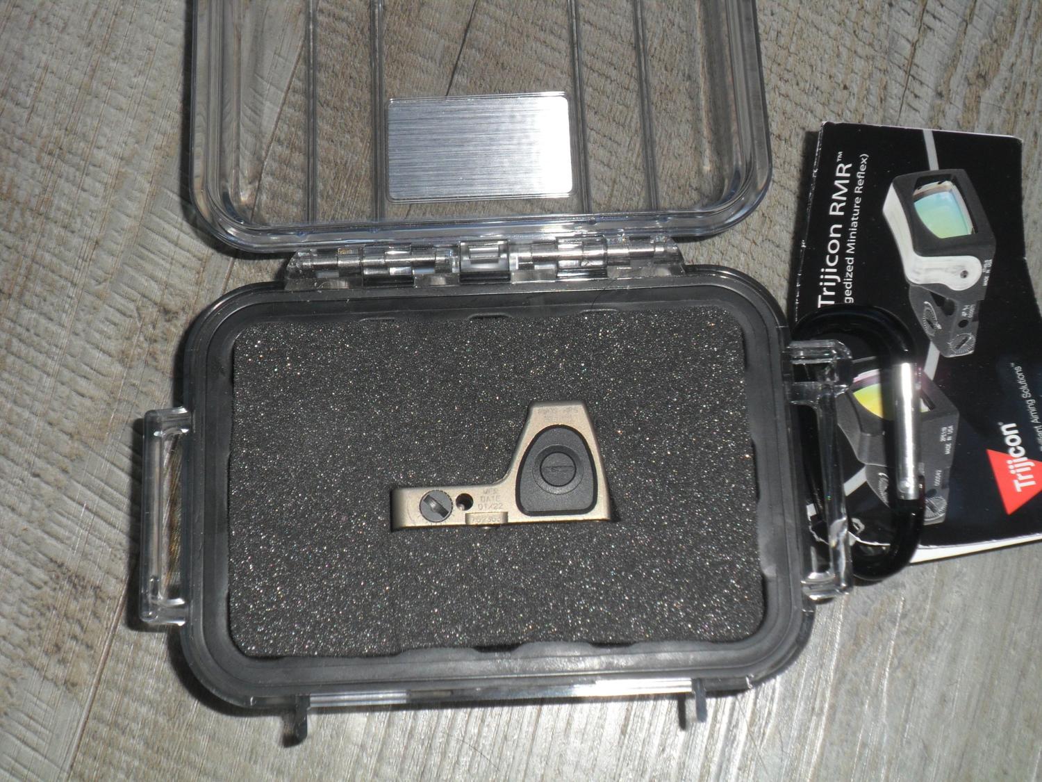 Used but excellent condition genuine Trijicon RM06 HRS Tan RMR Sight. This model has a on / off with manually adjusting 3.25 MOA red dot. Optics is in very good condition with no wear to the lens. Comes with original Trijicon pelican case. Does not include any mounting hardware.