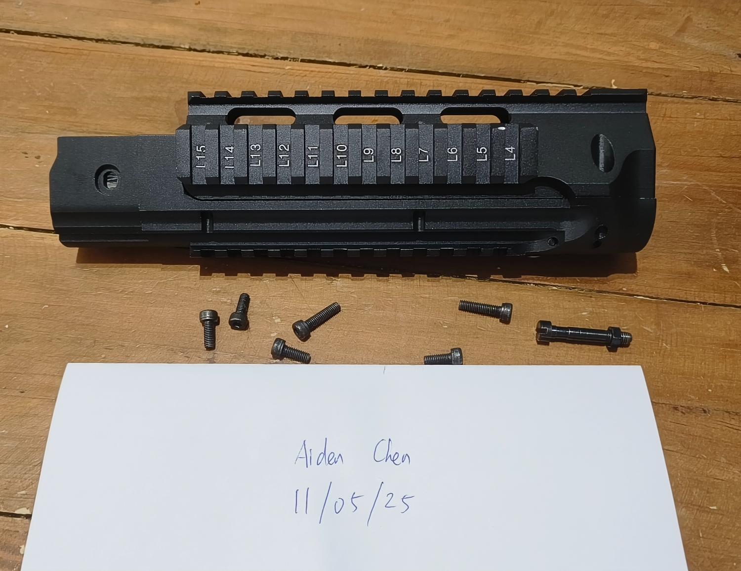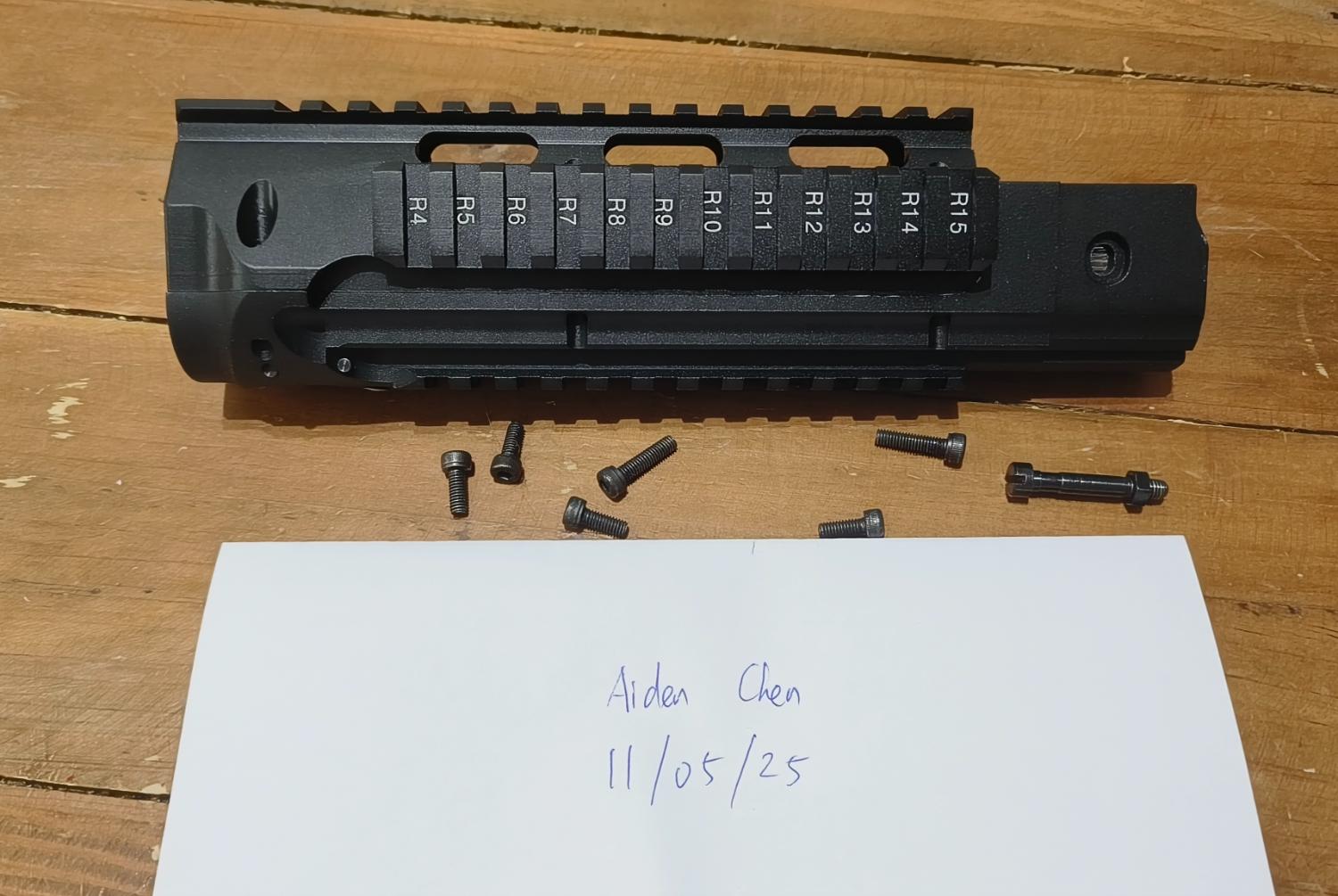 A replica DSA SA58 style quad rail handguard made of CNC aluminium. Only tested on VFC LAR OSW GBB. See the picture of my Tarkov build