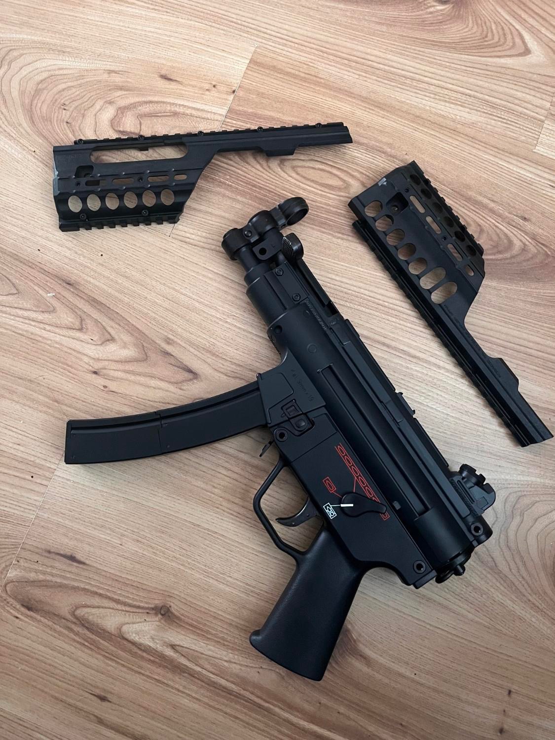 Maruzen’s MP5K. Wicked little ripper. Comes in collectors hardcase and includes an extra WELL magazine. Not the foregrip.