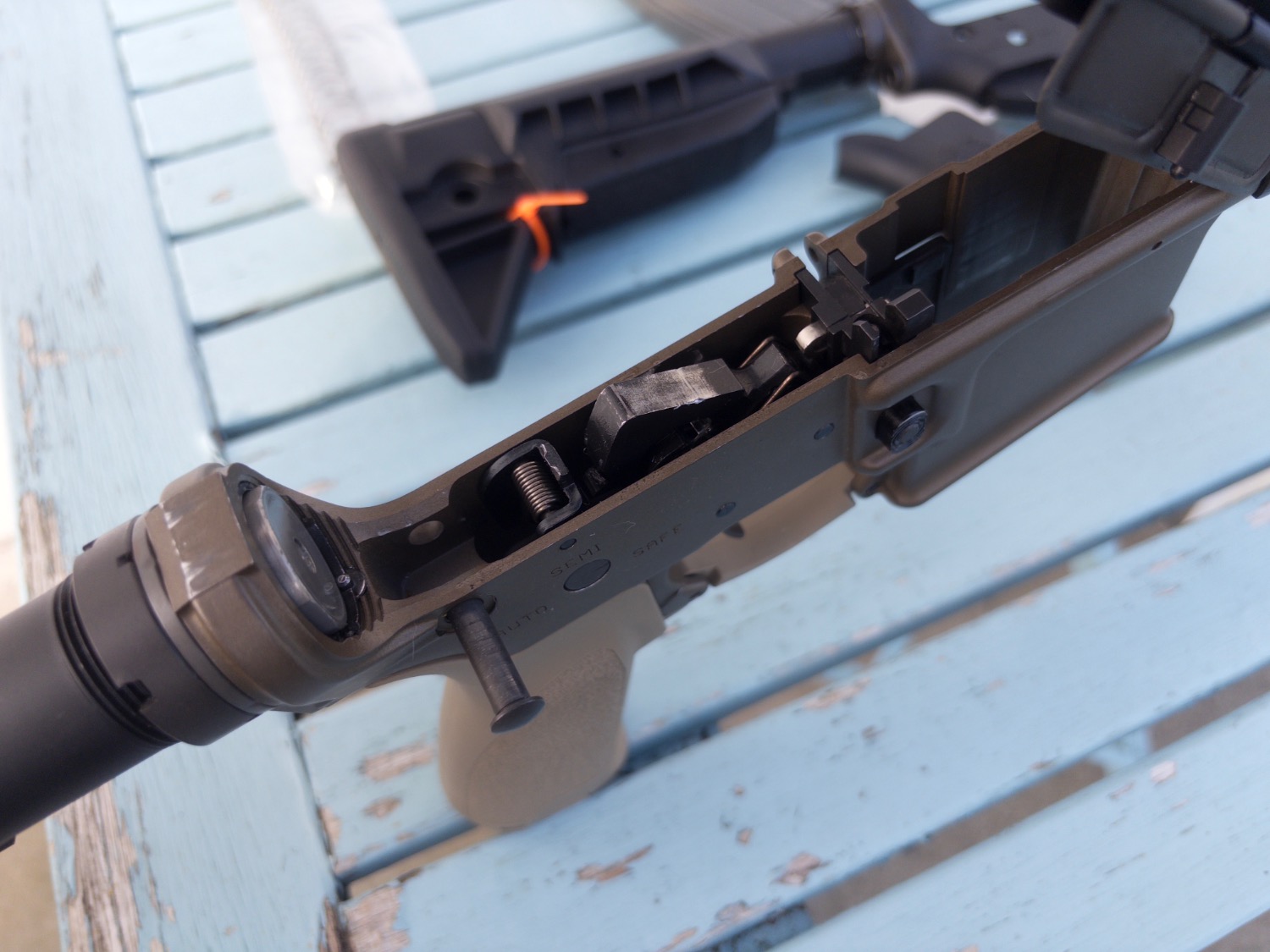 Only thing to note is the tan lower receiver has had a small bit that holds the trigger guard on snap although does not affect function and is held on well by the pin so only noticeable if you’re looking for it. Because of this issue the receiver has not been included in the final price.