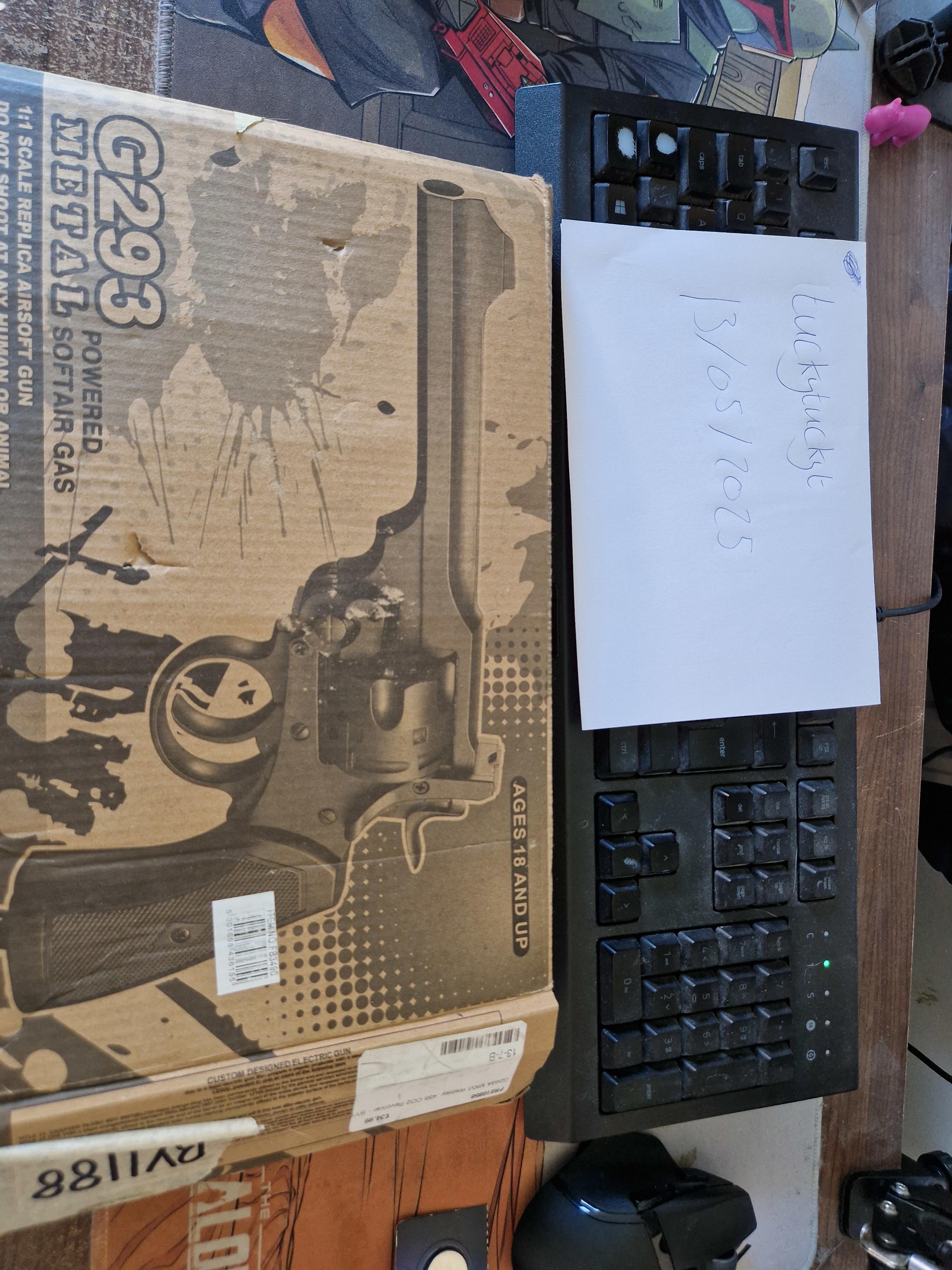 In boneyard because while it fires the trigger doesn't reset after firing so have to push the trigger forward to fire again, can show a video of this on request. The box for it is knackared but will include it so you can see what the make and model is.