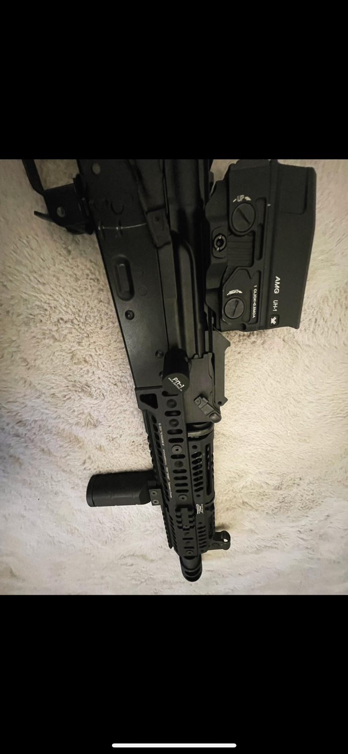 had barrel shortened to make it look like a AK105 spec and also had zenitco handguard, pistol grip , stock and foregrip.
