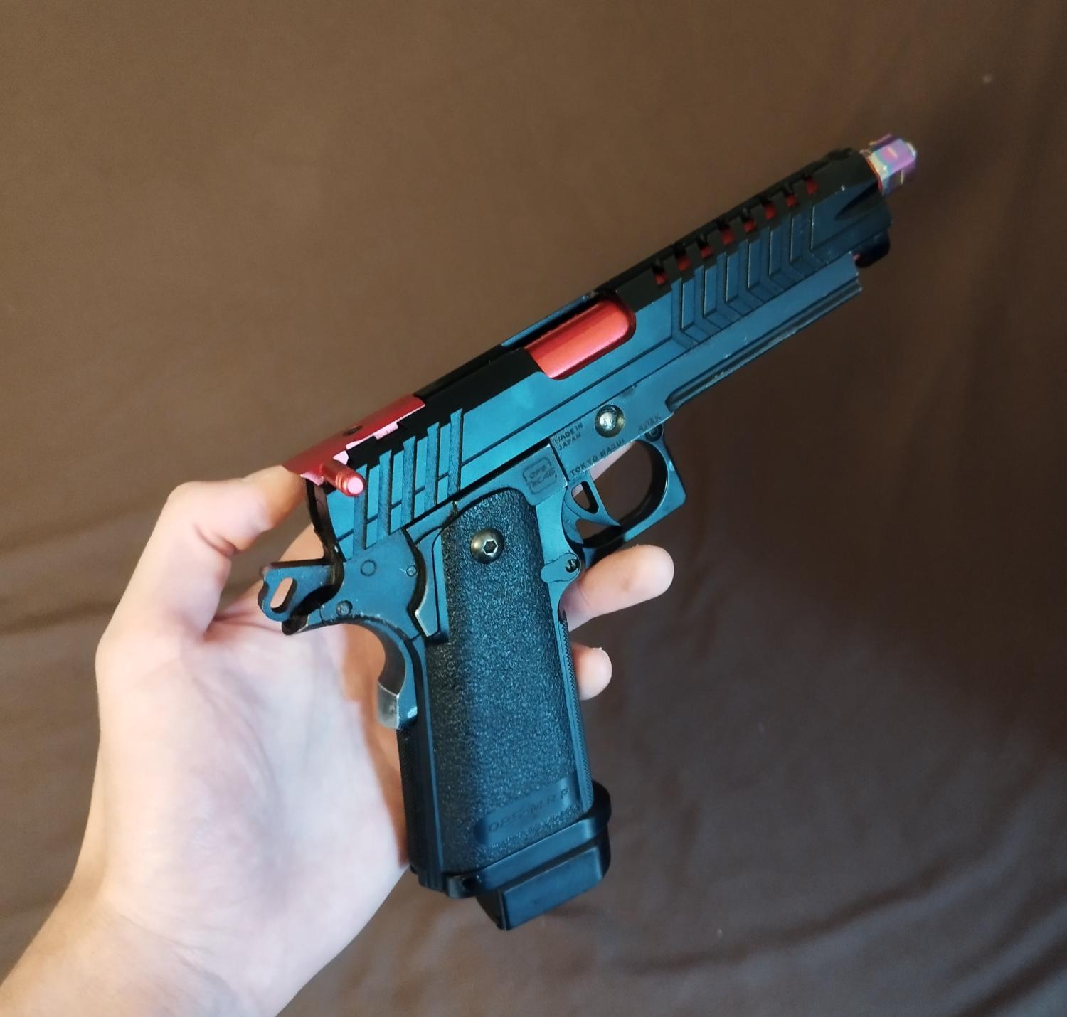Sadly selling this custom TM Hi-Capa as it's hardly ever used. It's spent most of its life as a wall hanger so in good condition. Specs are as follows: