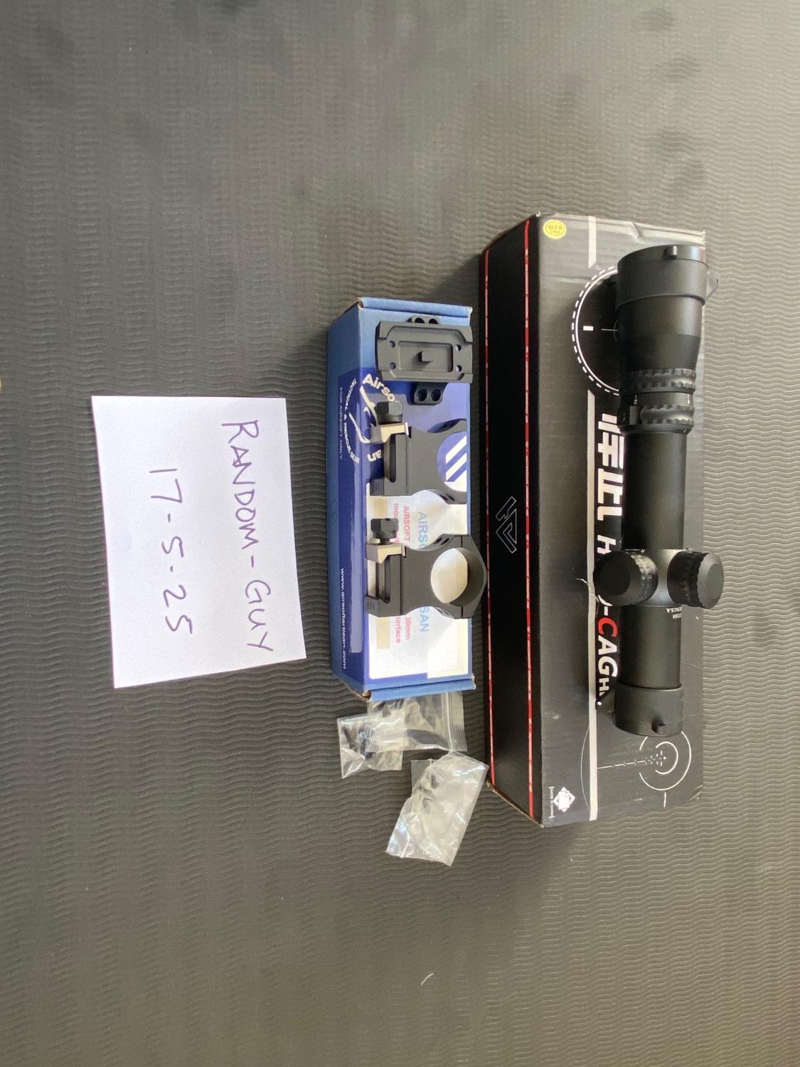 Holy Warrior NX8 1-4X LPVO nightforce optic with Airsoft Artisan mounts that can fit an Aimpoint T1/T2